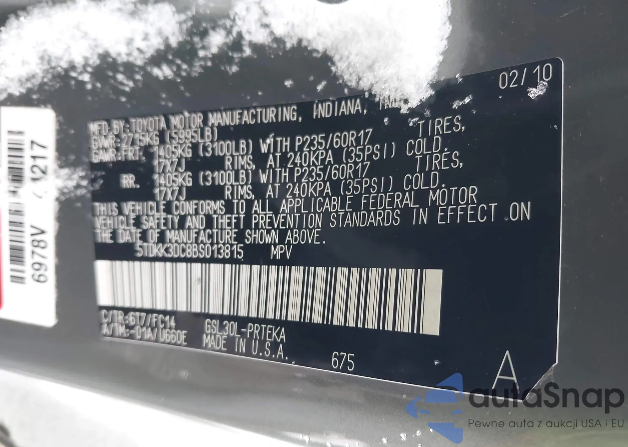 • VIN 5TDKK3DC8BS013815