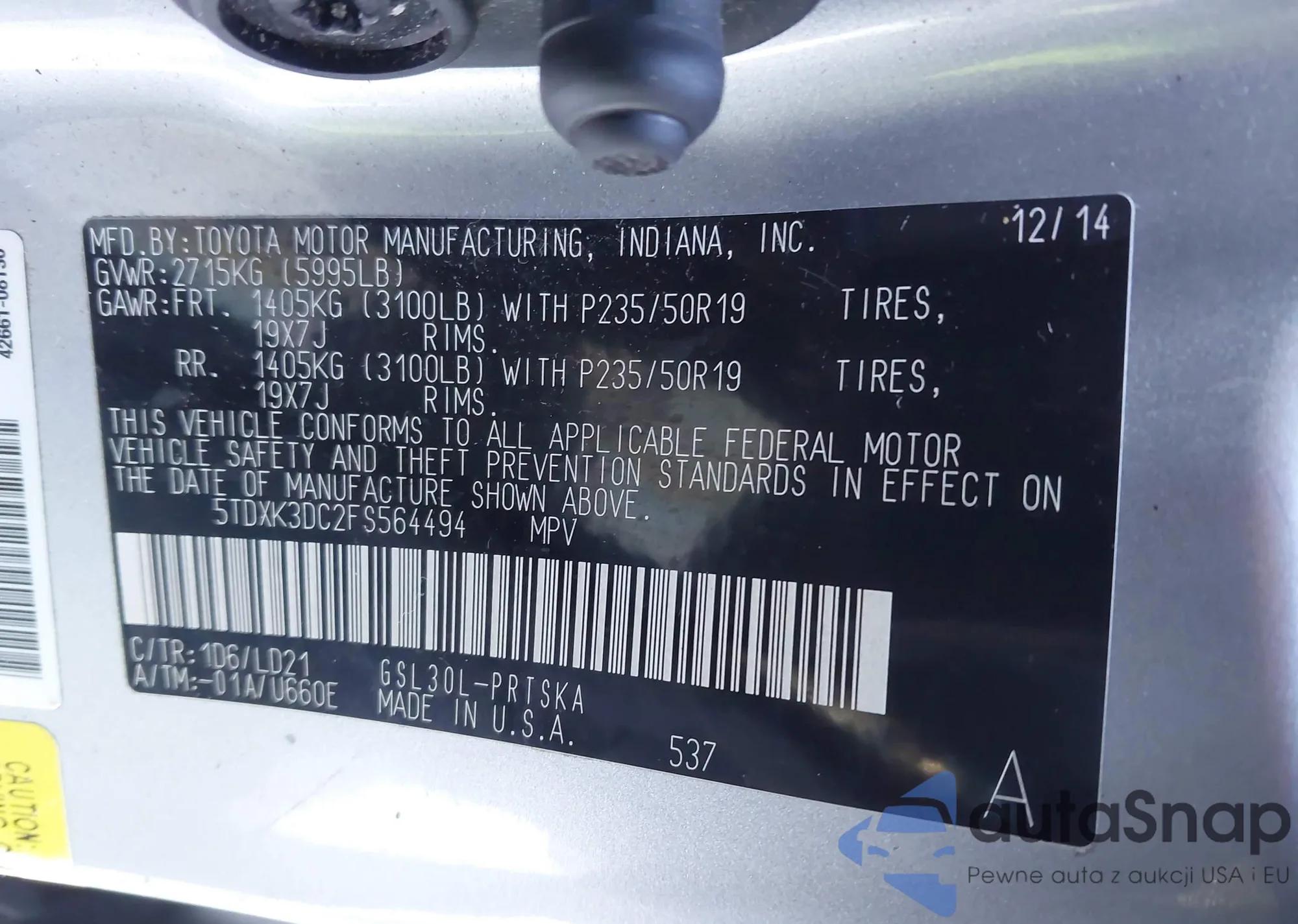 • VIN 5TDXK3DC2FS564494