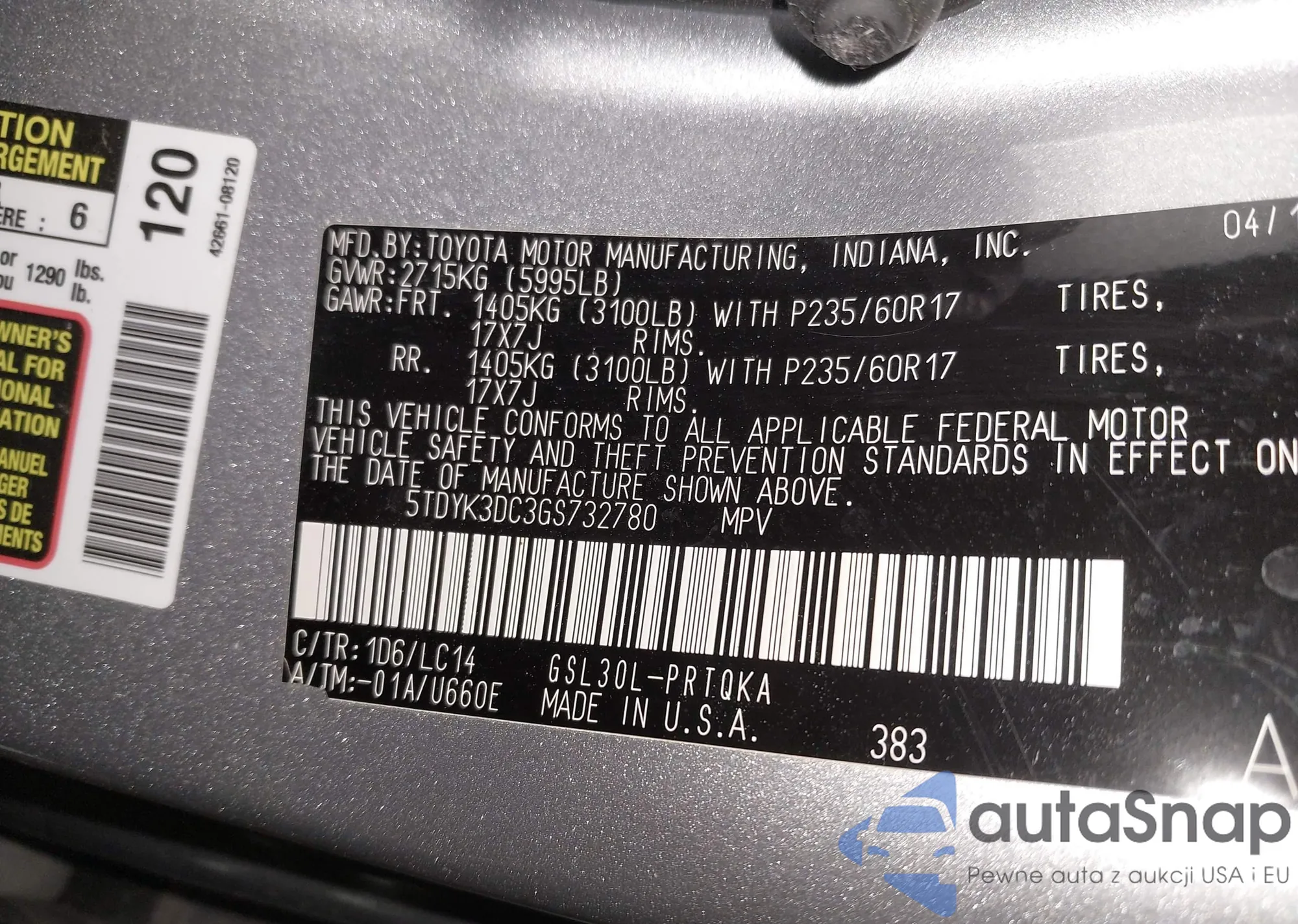 • VIN 5TDYK3DC3GS732780