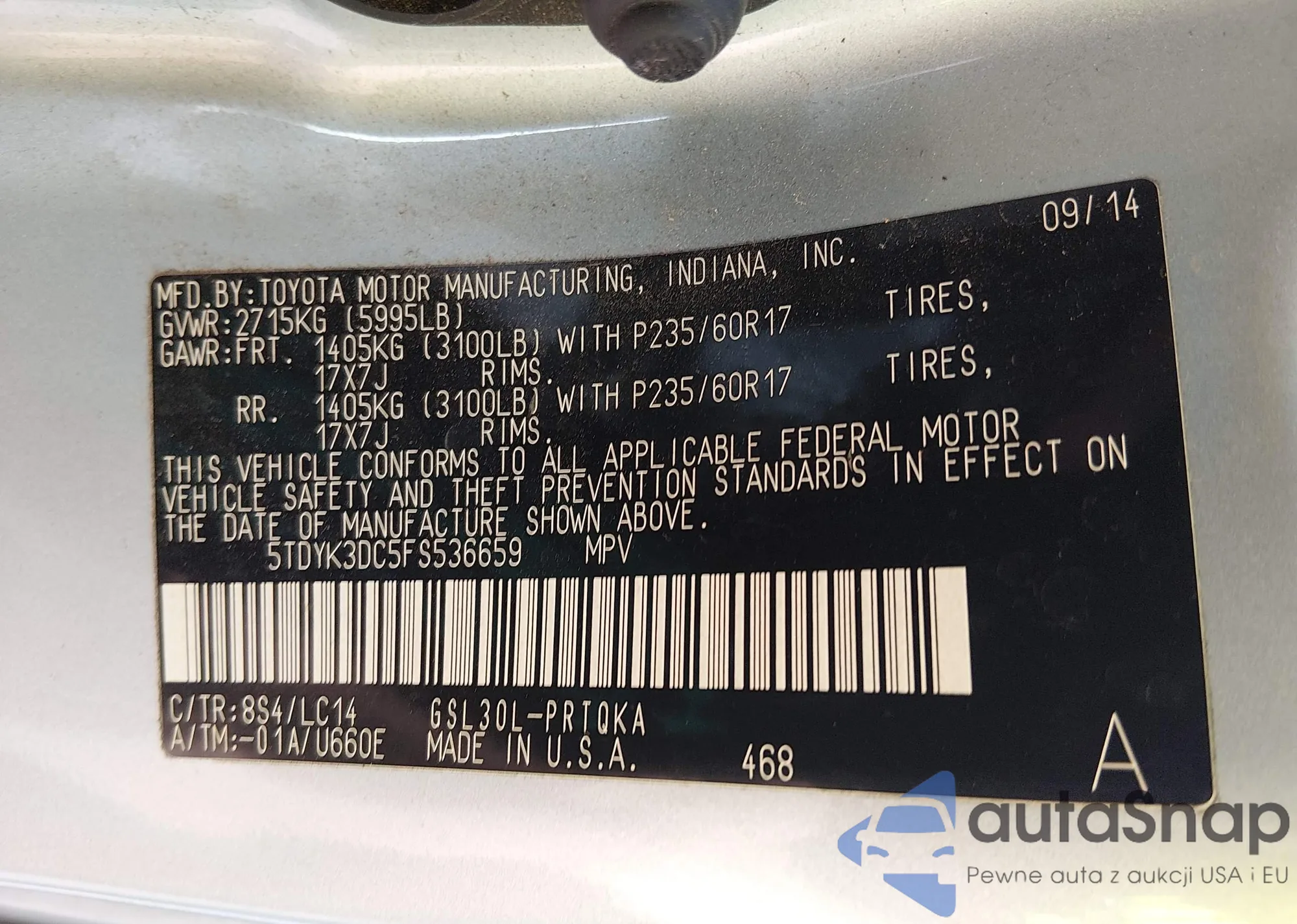 • VIN 5TDYK3DC5FS536659