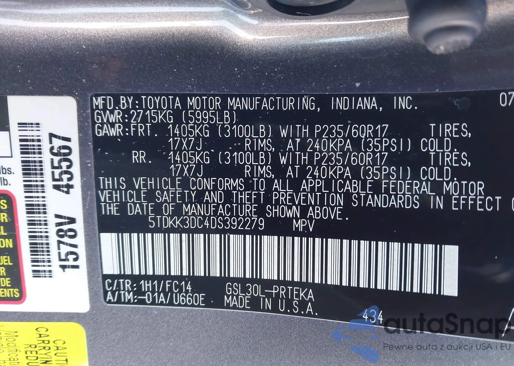 LOT: 44168535 VIN: 5TDKK3DC4DS392279