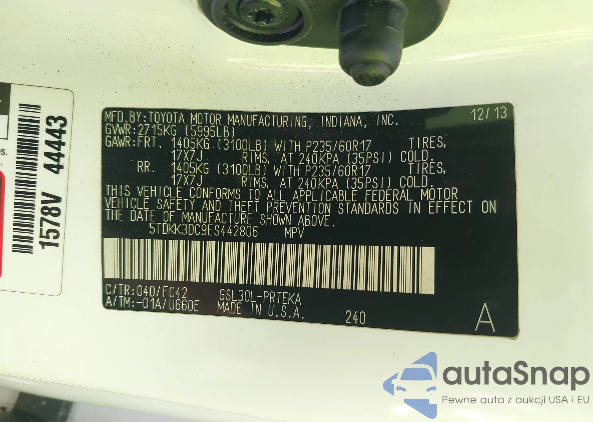 • VIN 5TDKK3DC9ES442806