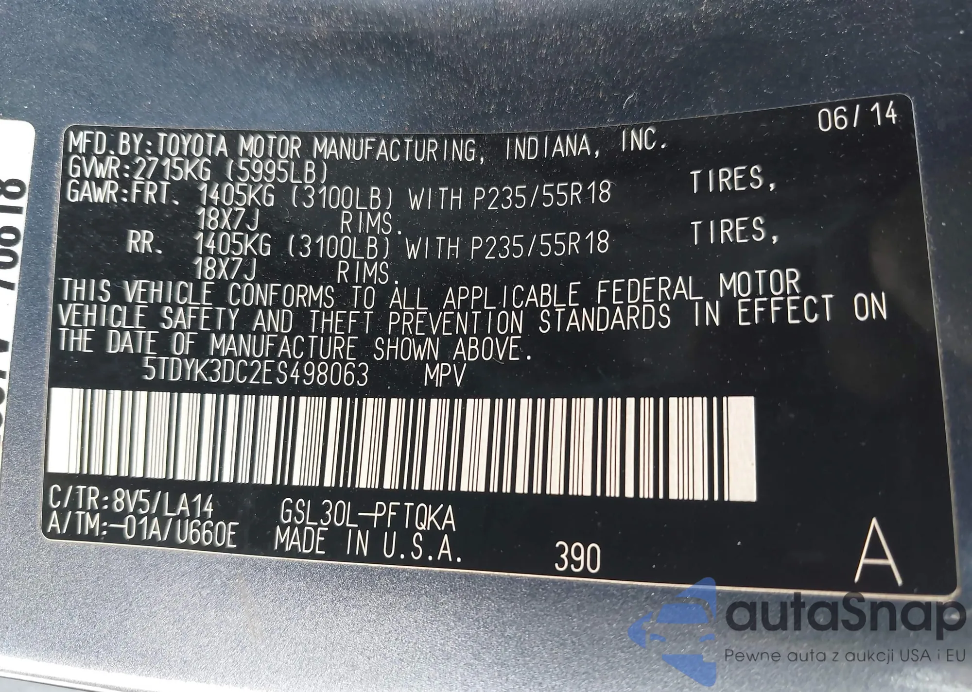 • VIN 5TDYK3DC2ES498063