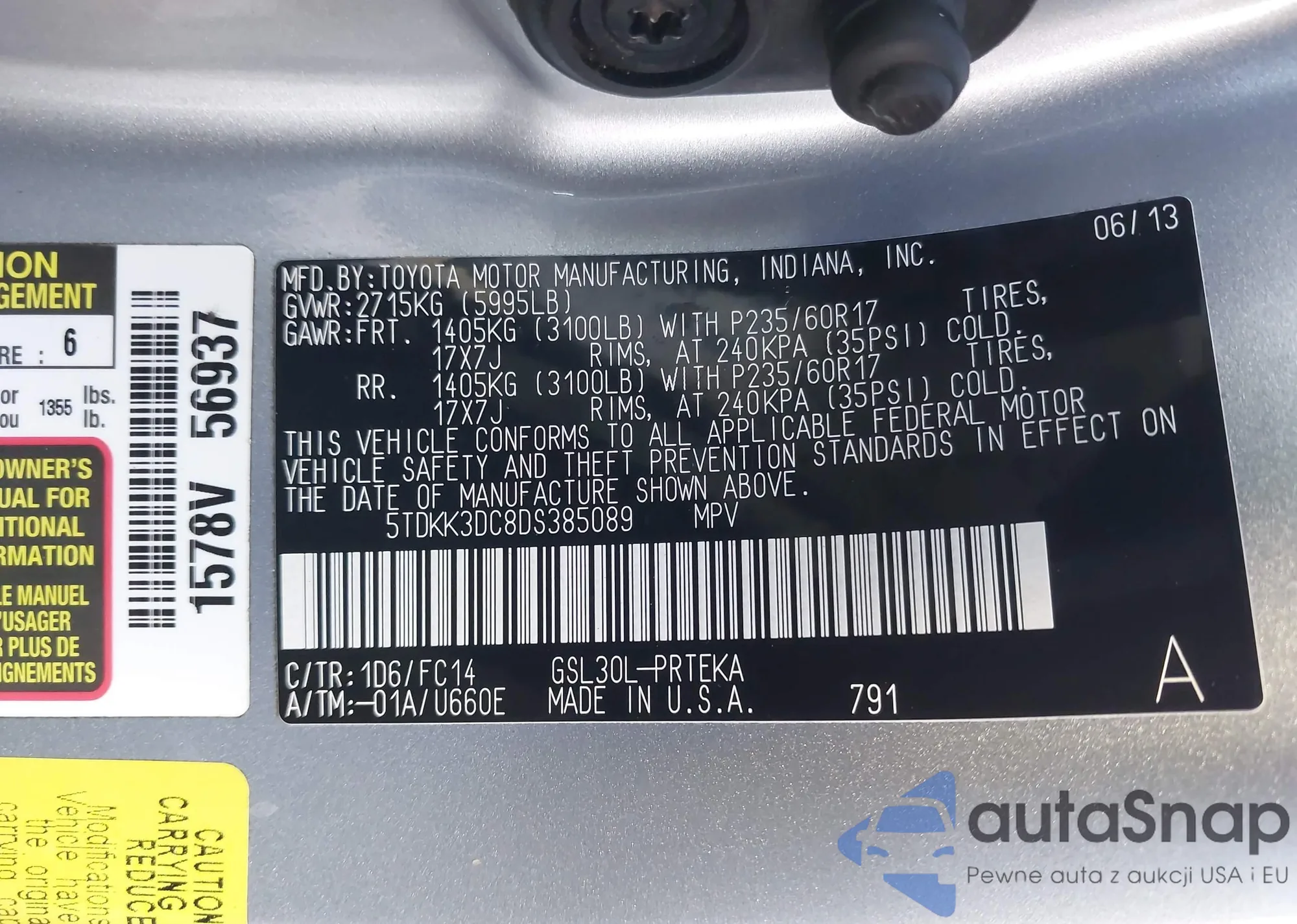 • VIN 5TDKK3DC8DS385089
