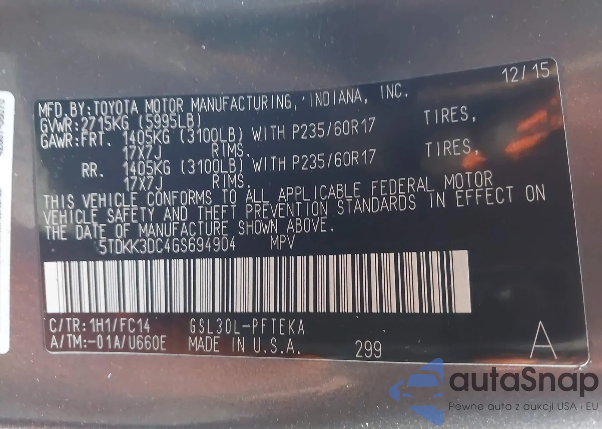 • VIN 5TDKK3DC4GS694904