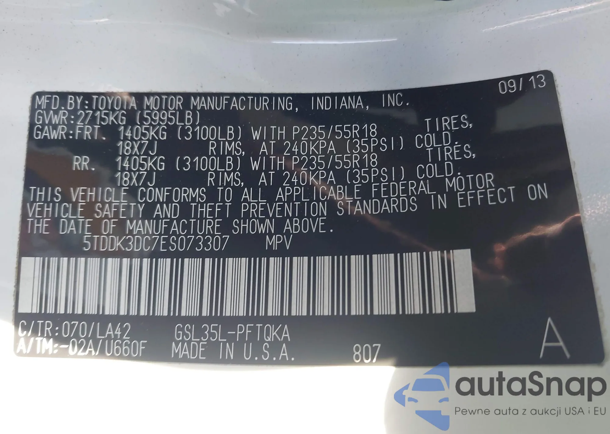 • VIN 5TDDK3DC7ES073307
