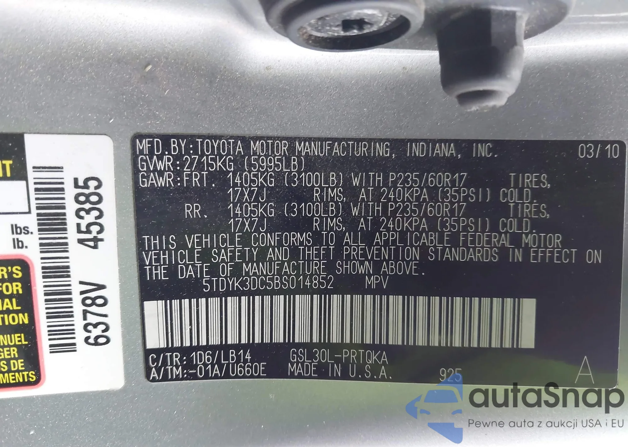 • VIN 5TDXK3DCXBS046028