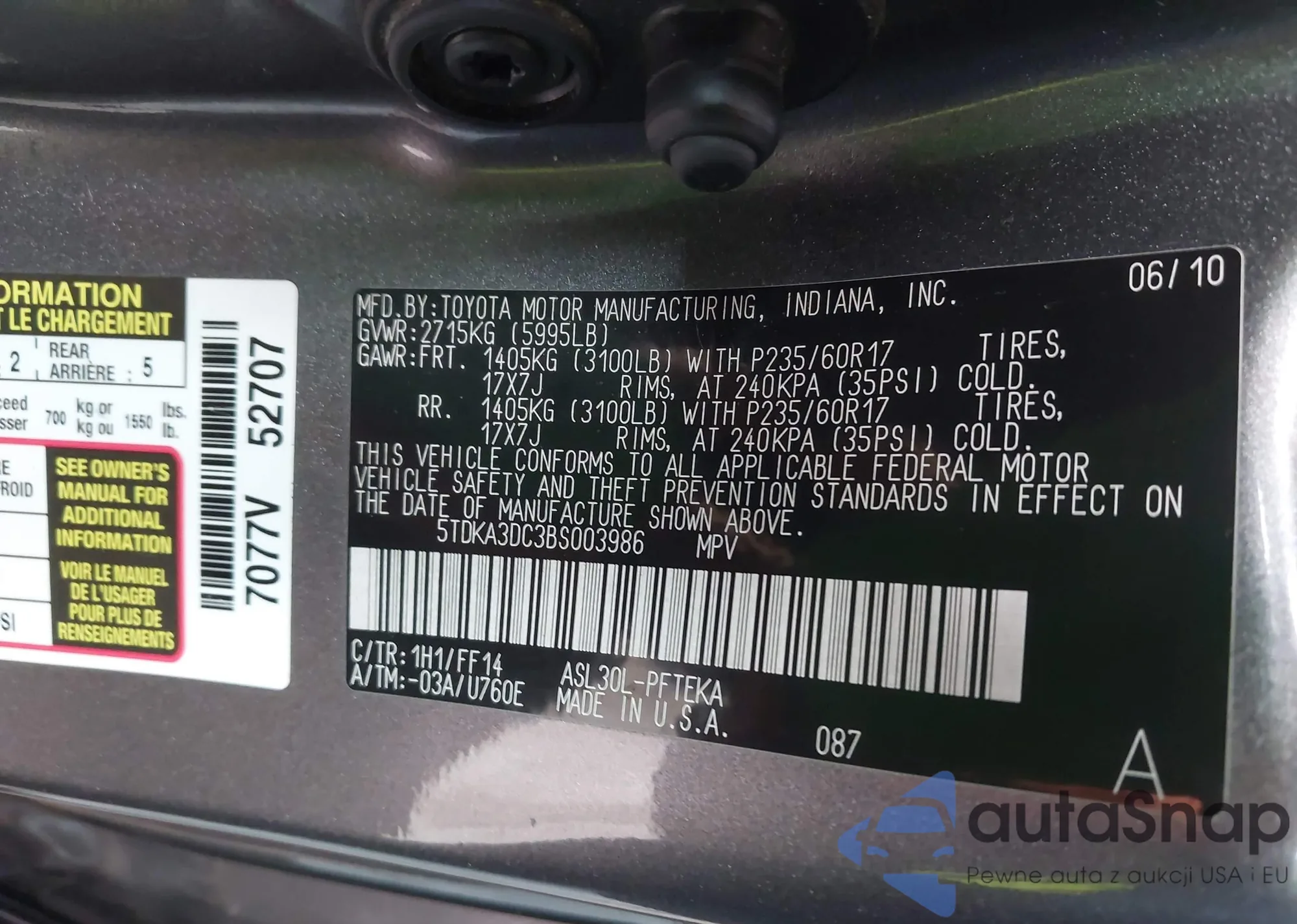 • VIN 5TDKA3DC3BS003986