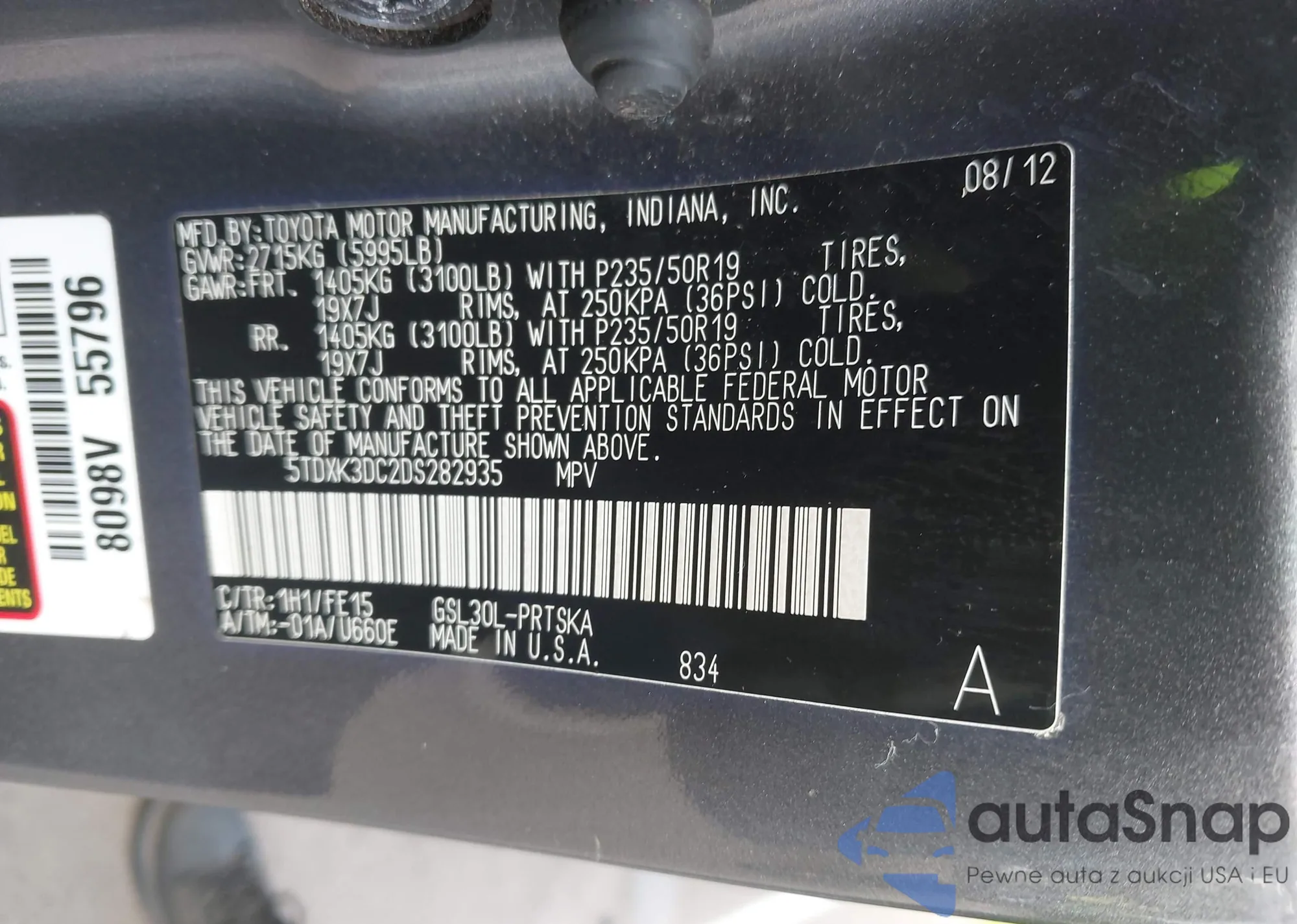 • VIN 5TDXK3DC2DS282935