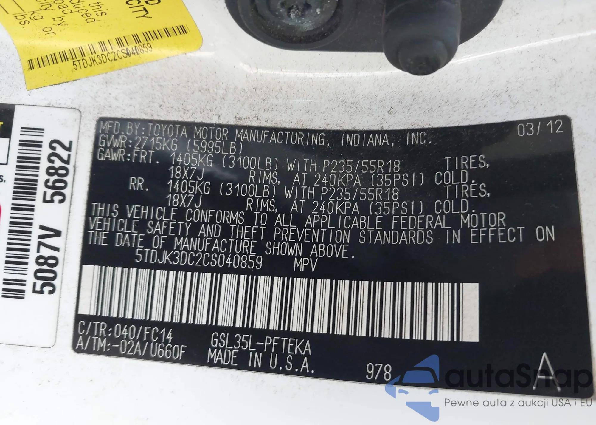 • VIN 5TDJK3DC2CS040859