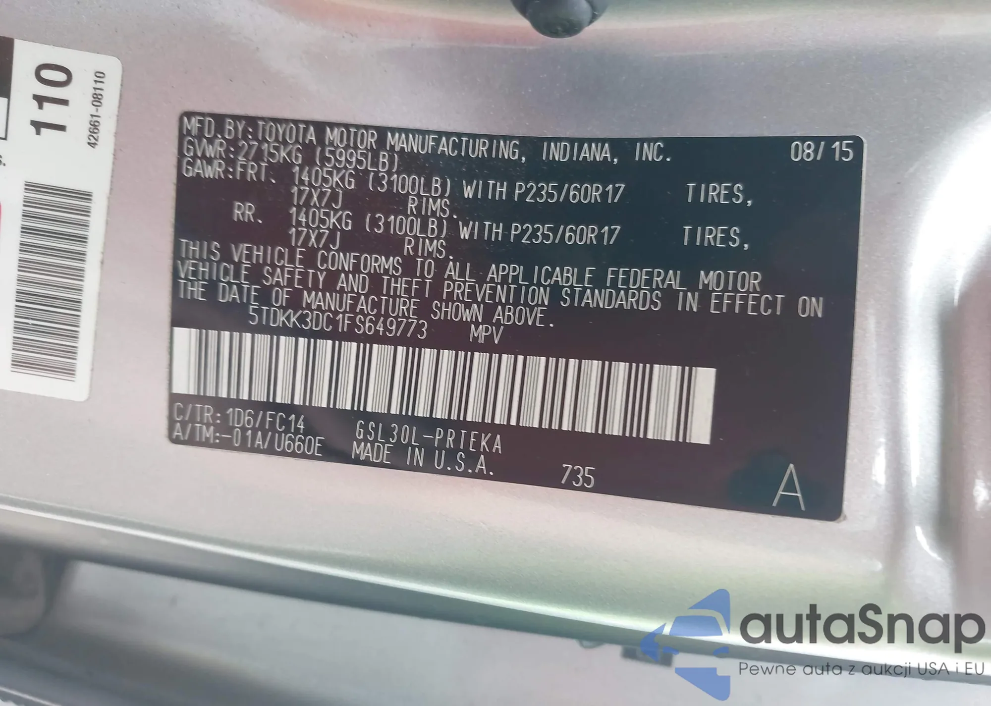 LOT: 44369670 VIN: 5TDKK3DC1FS649773