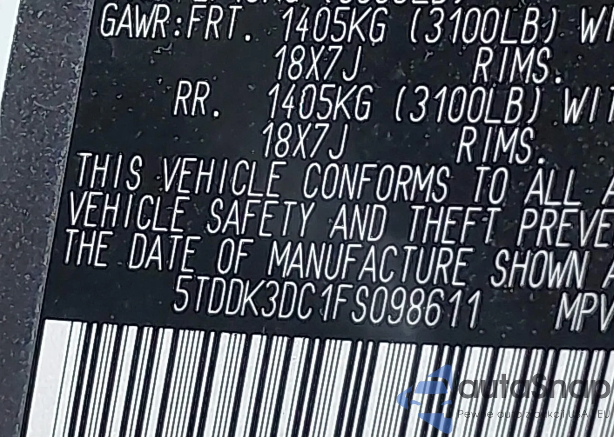 • VIN 5TDDK3DC1FS098611