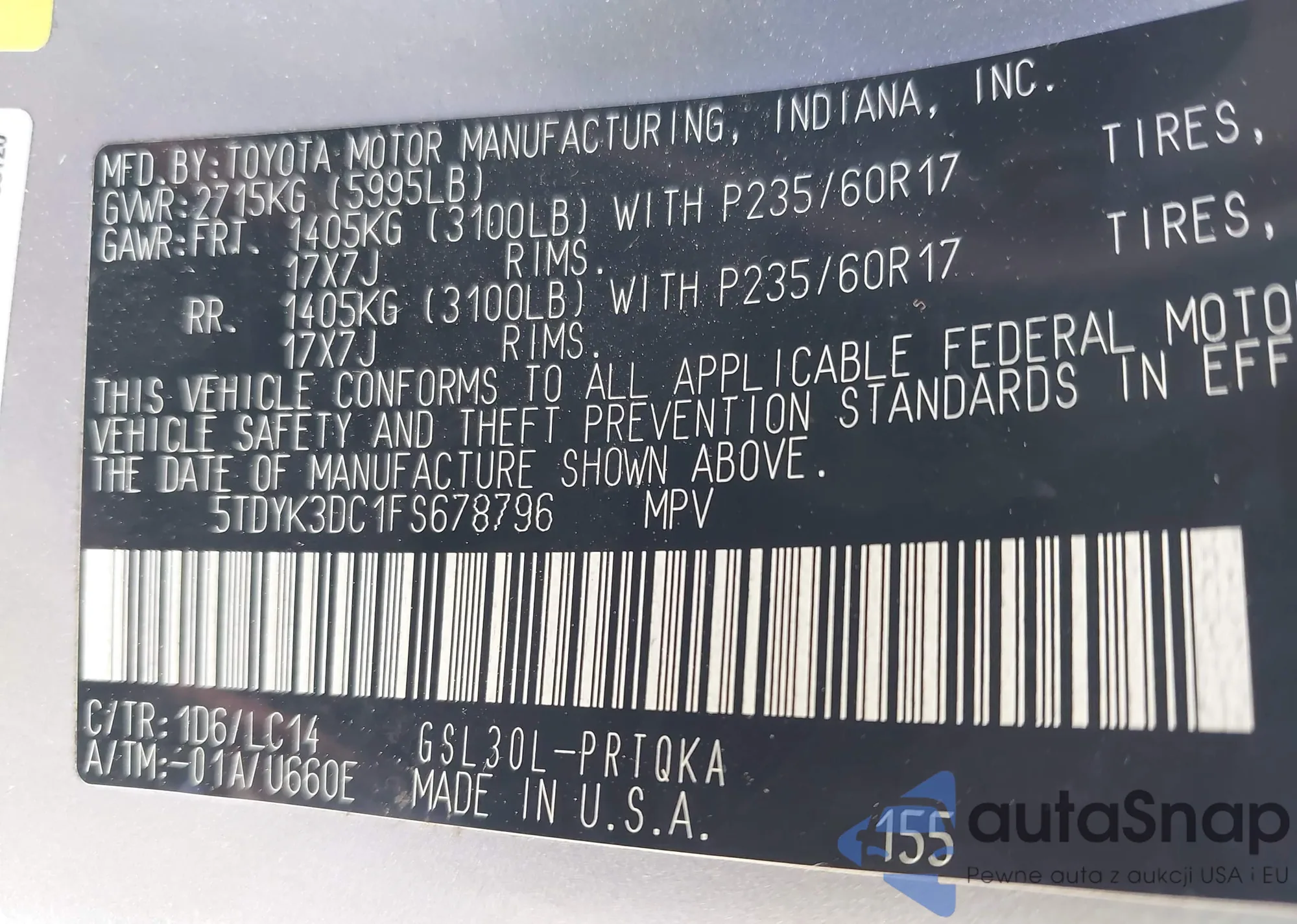 • VIN 5TDYK3DC1FS678796