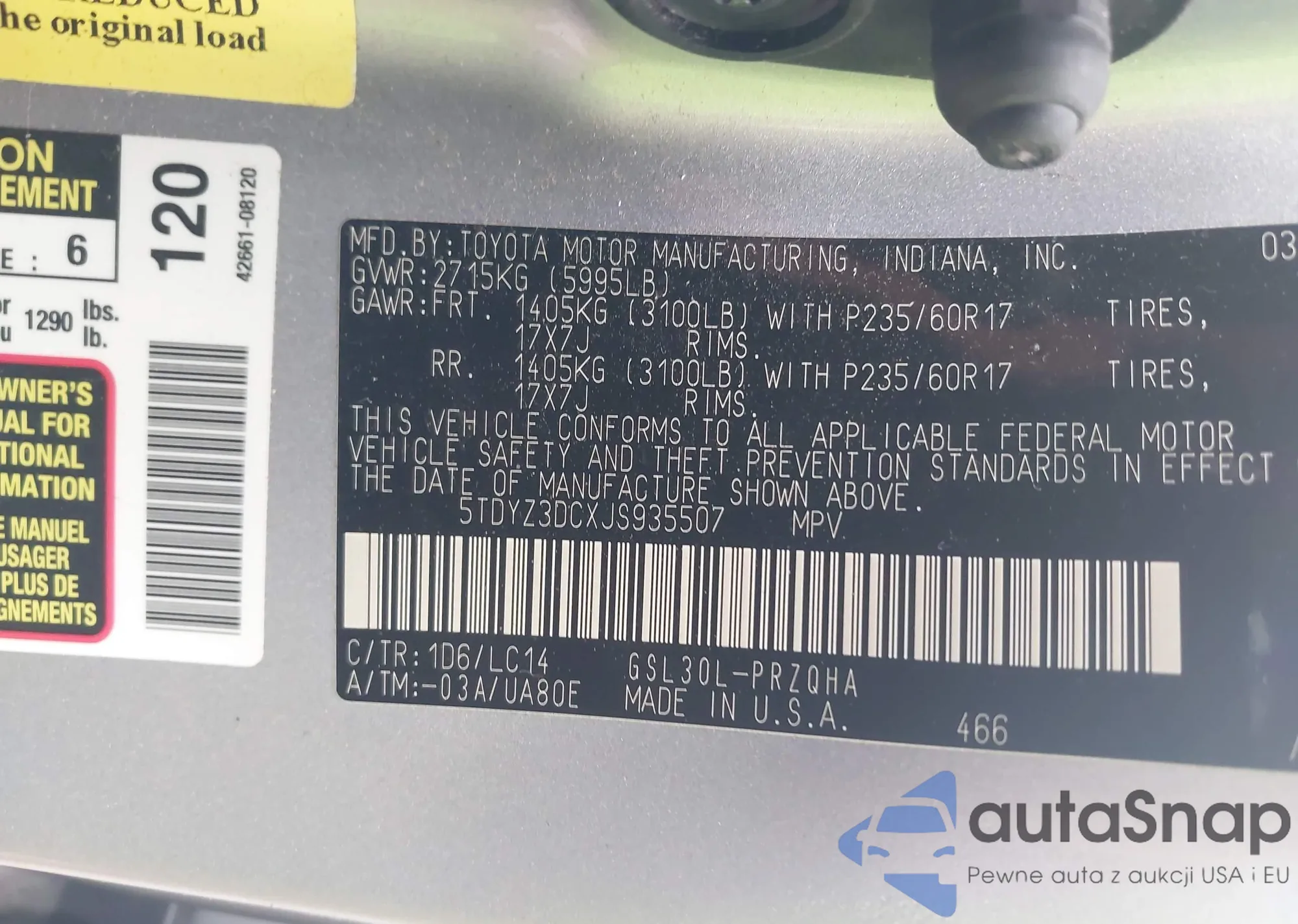 • VIN 5TDYZ3DCXJS935507