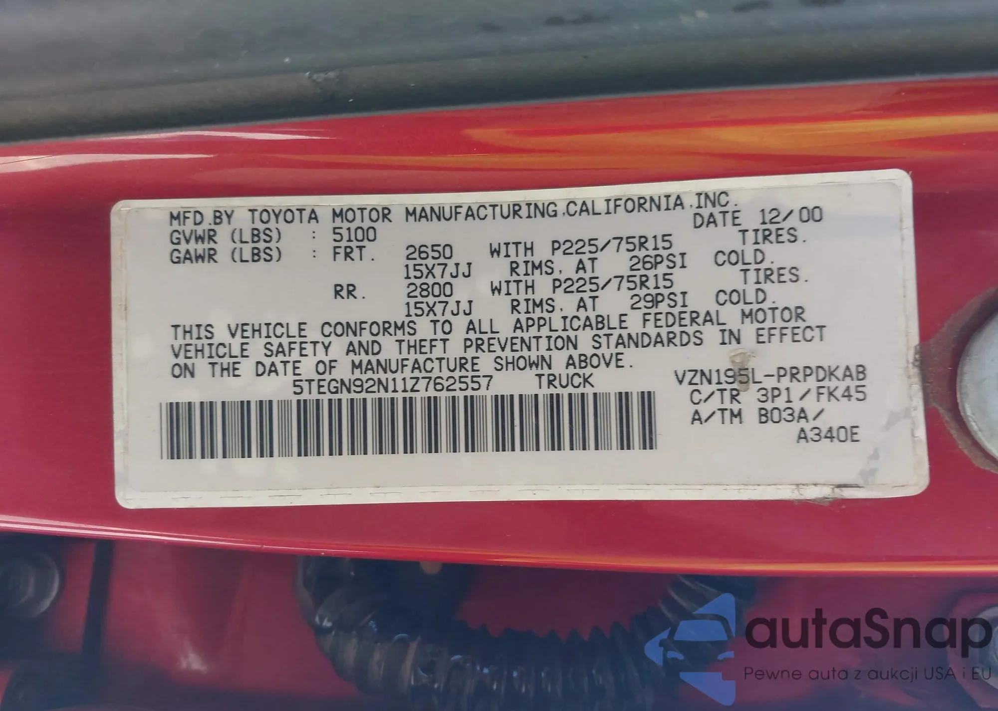 • VIN 5TEWN72N51Z864668