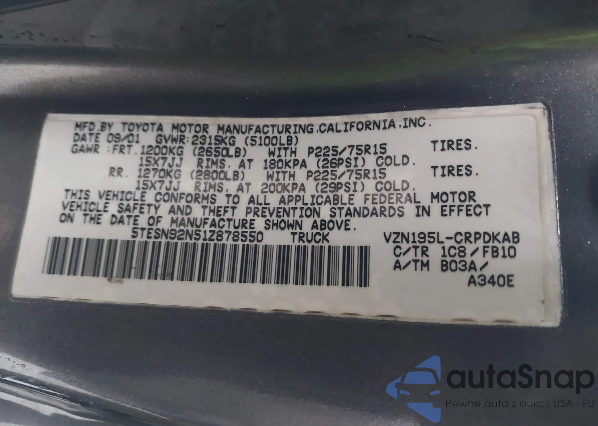• VIN 5TESN92N51Z878550