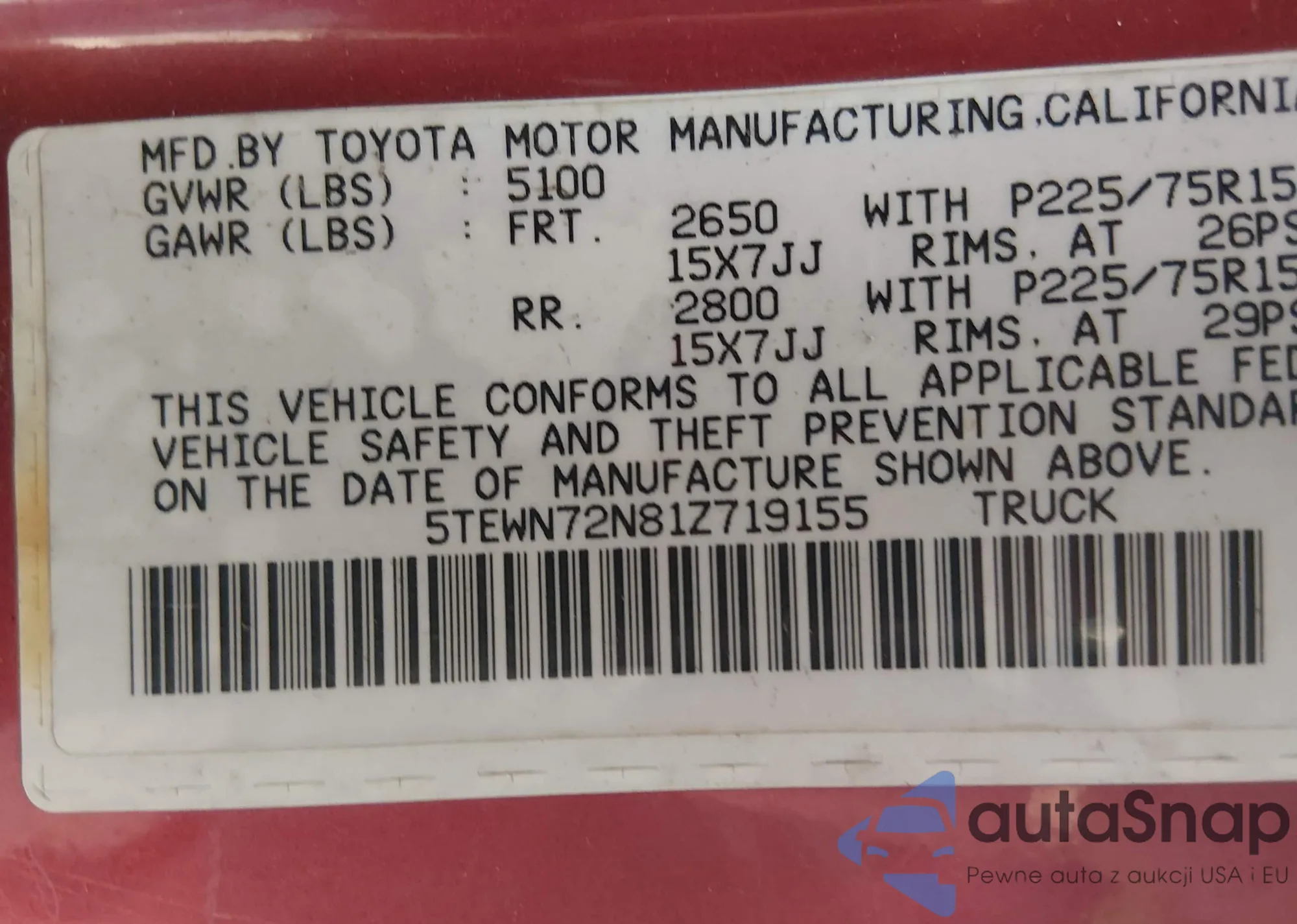 • VIN 5TEWN72N81Z719155