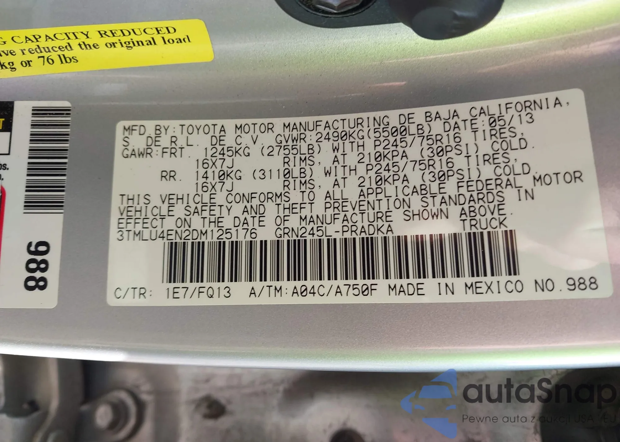 • VIN 3TMLU4EN2DM125176