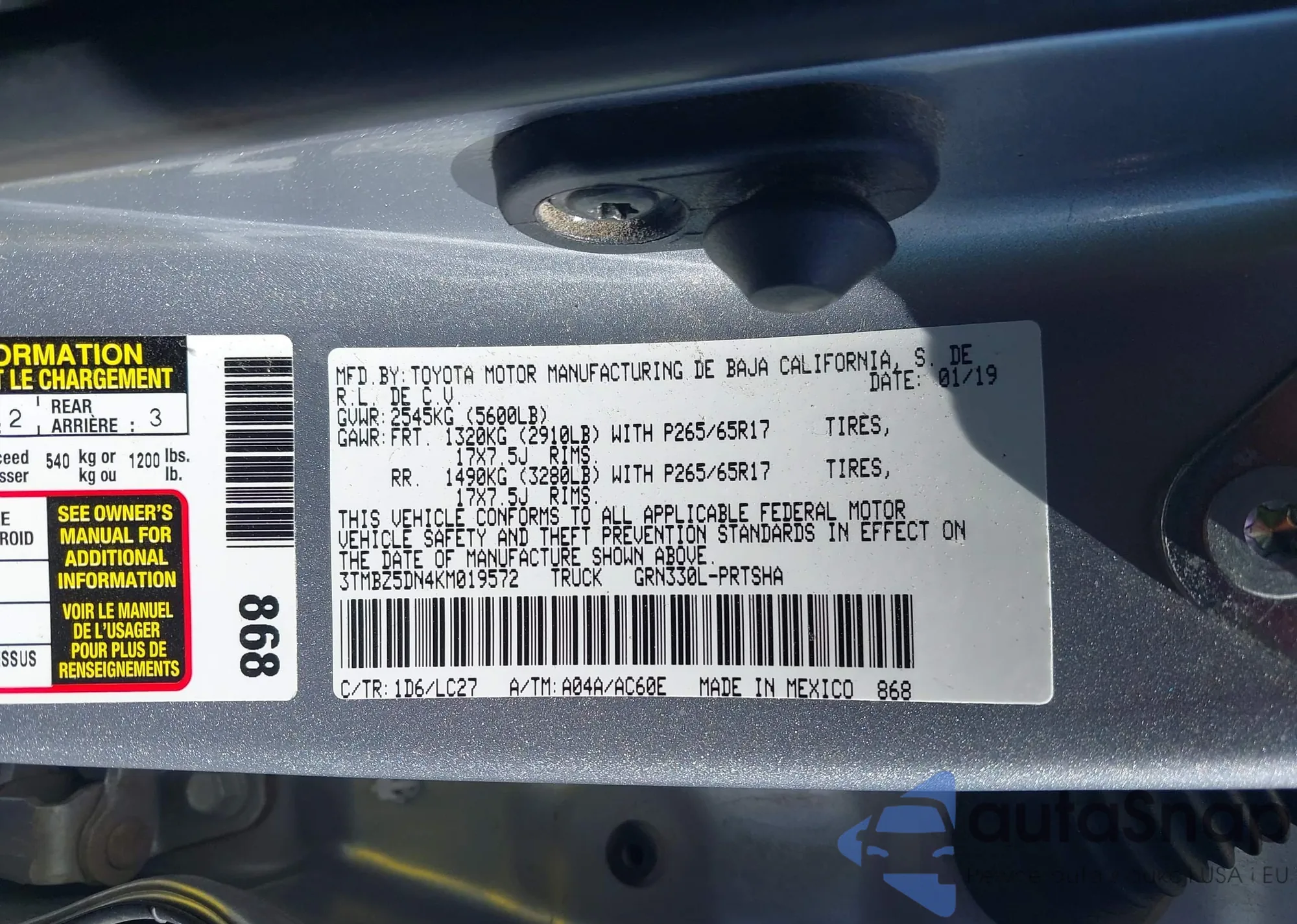 • VIN 3TMBZ5DN4KM019572
