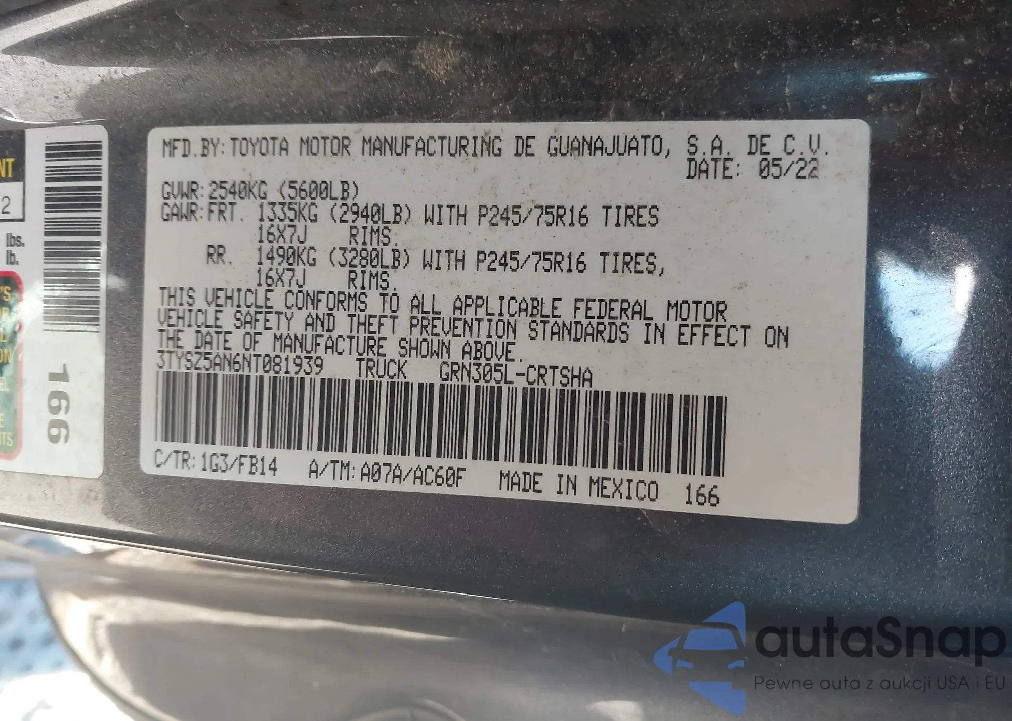 • VIN 3TYSZ5AN6NT081939