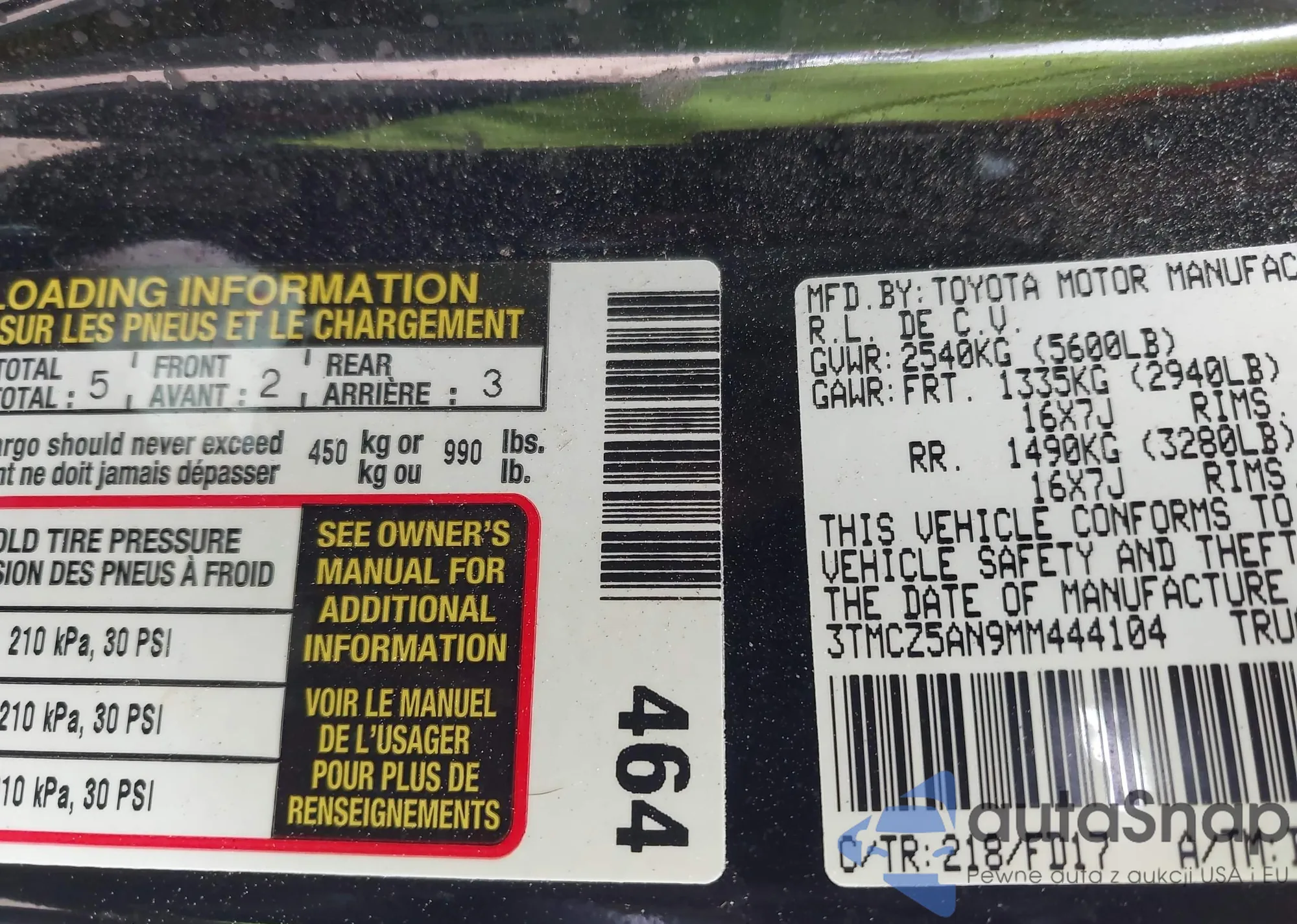 • VIN 3TMCZ5AN9MM444104