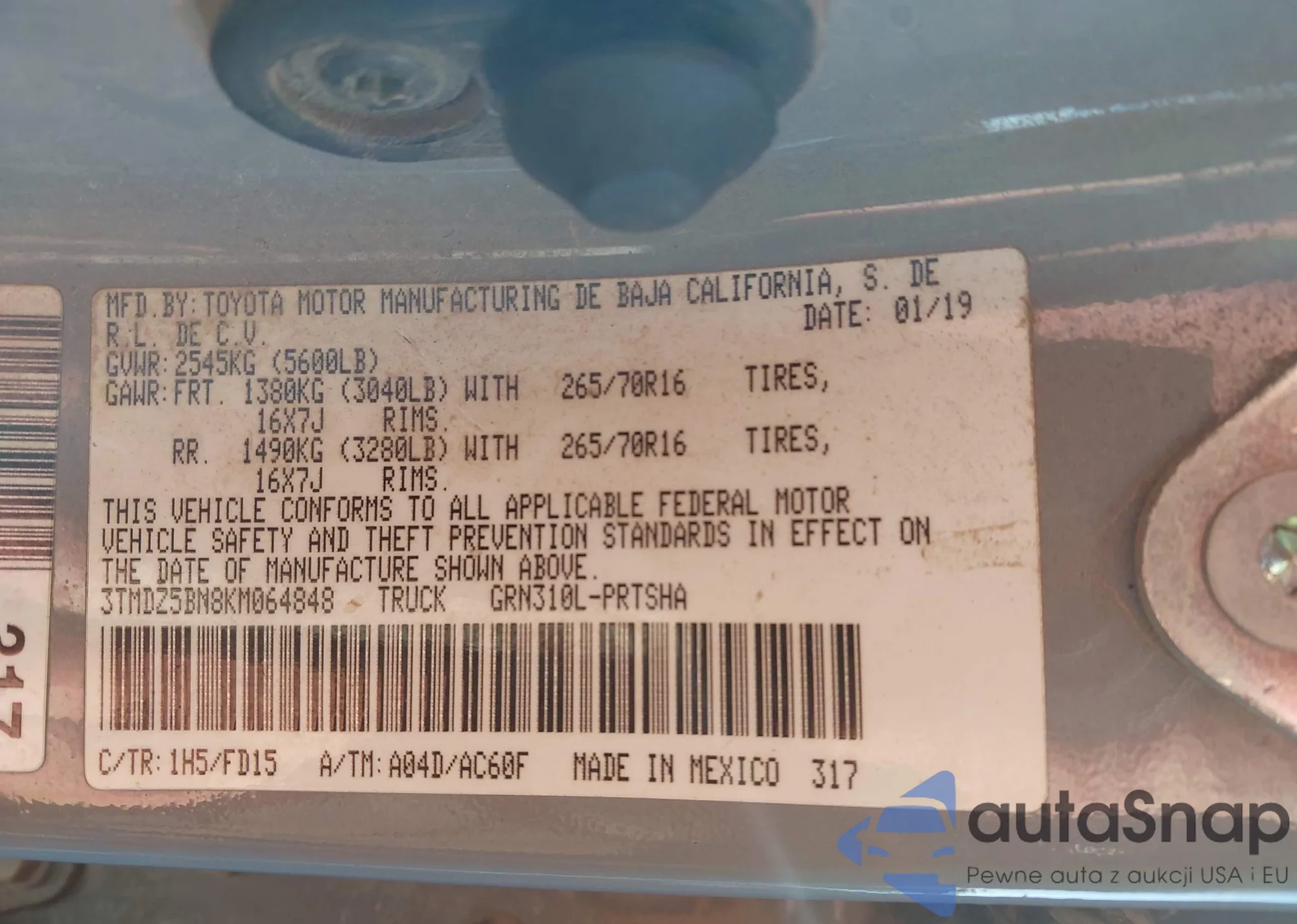 • VIN 3TMDZ5BN8KM064848