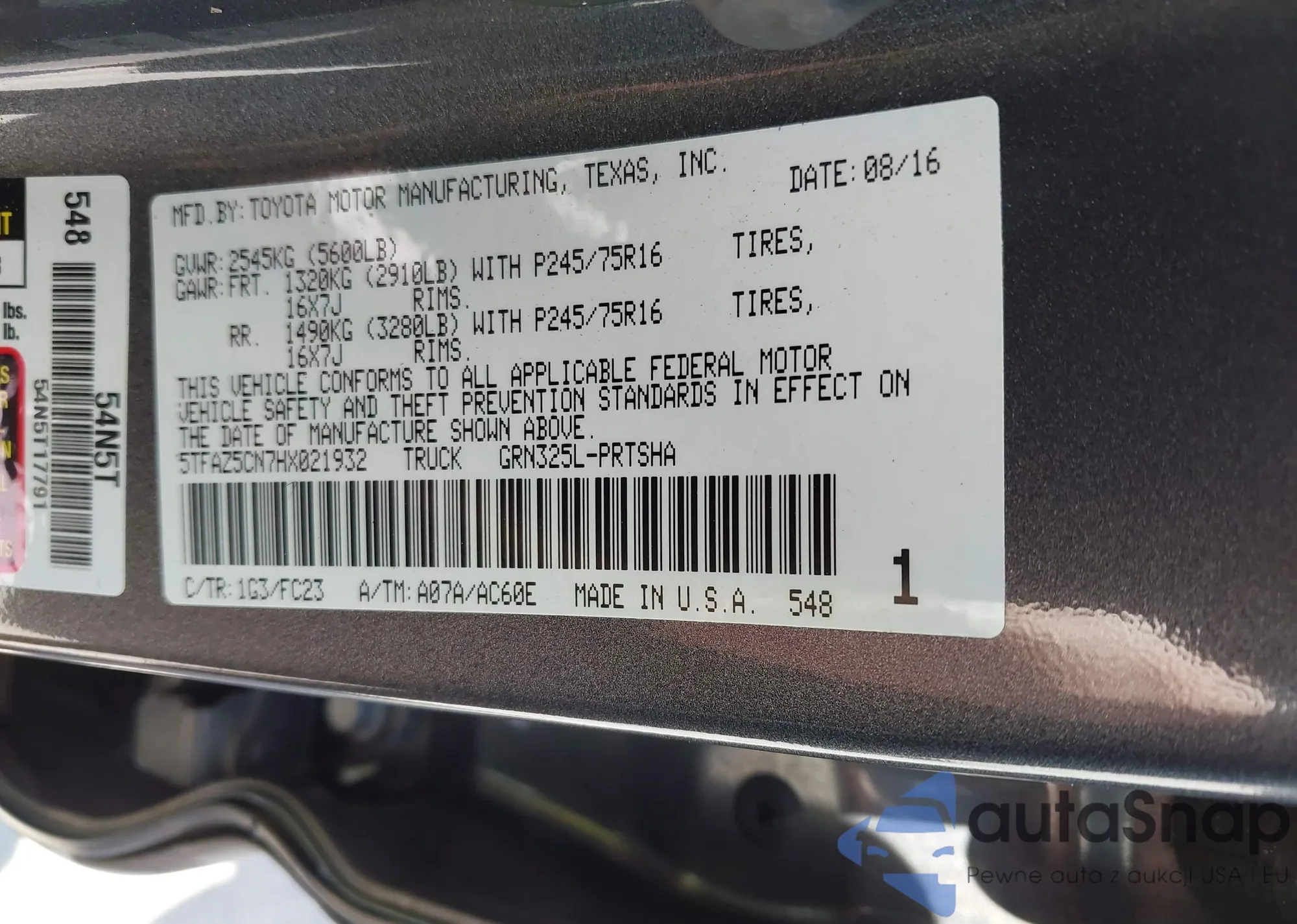 • VIN 5TFAZ5CN7HX021932