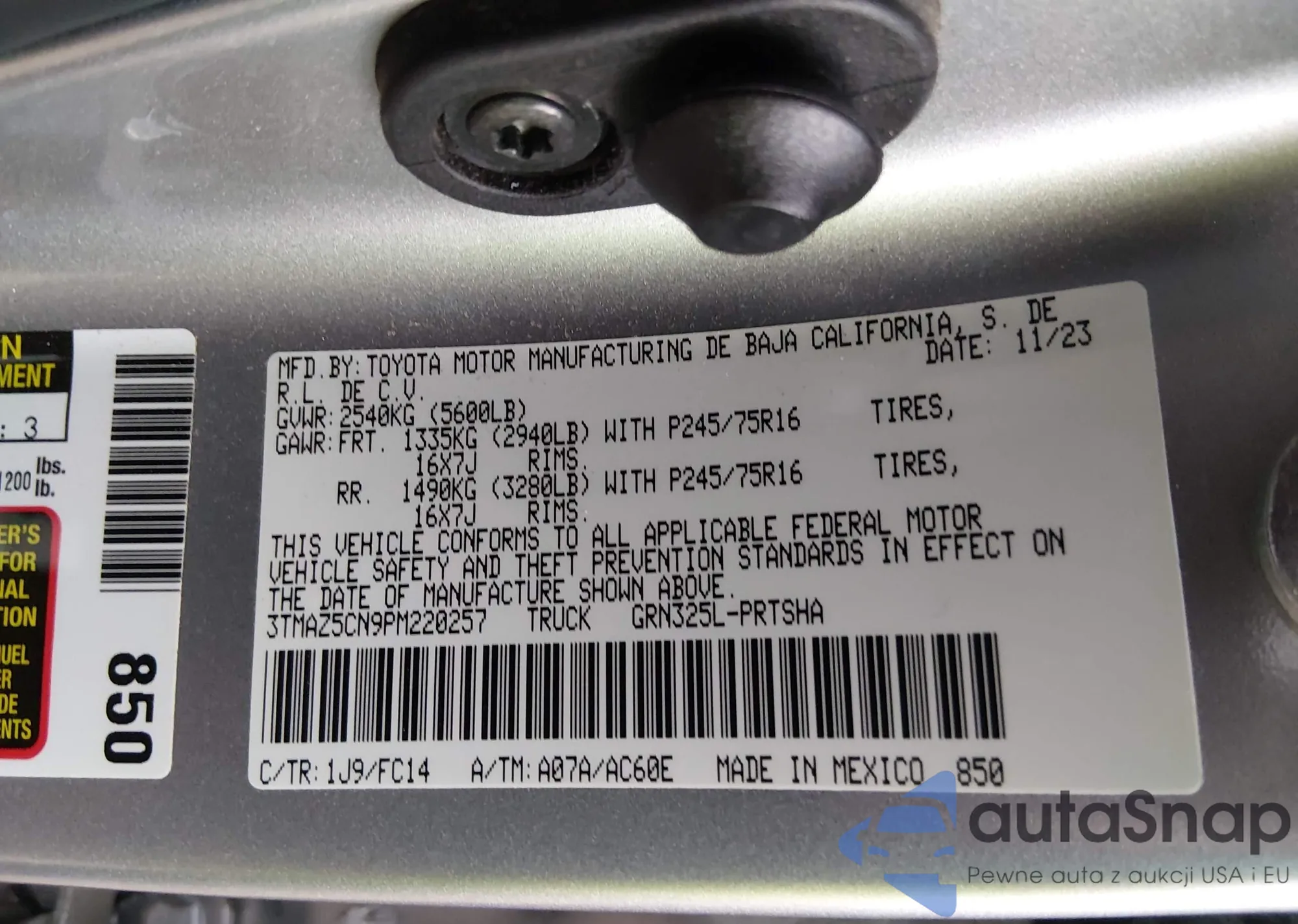 • VIN 3TMAZ5CN9PM220257