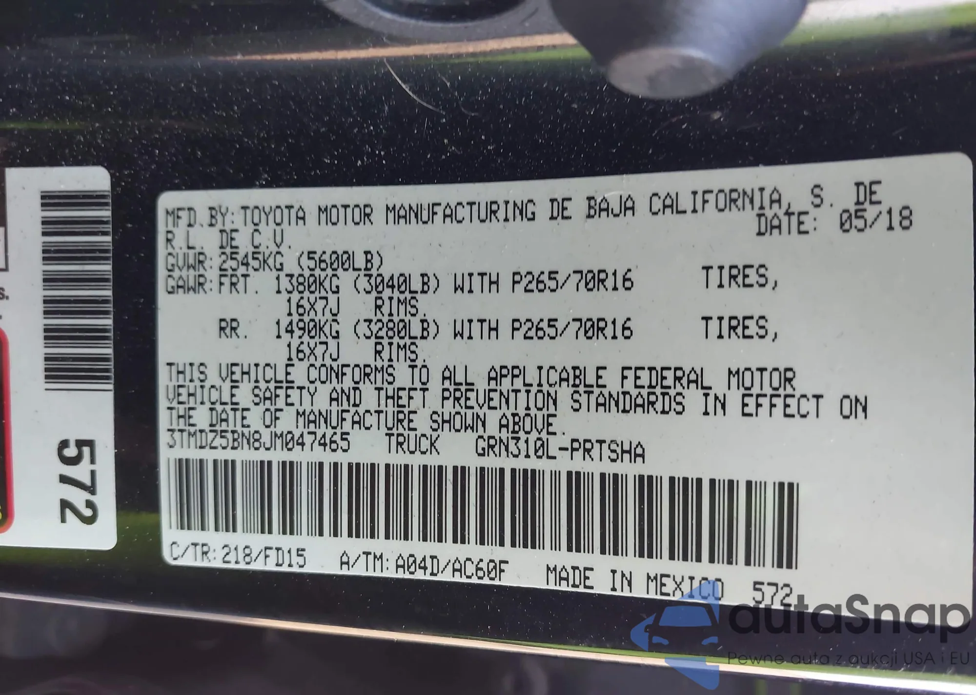 • VIN 3TMDZ5BN8JM047465