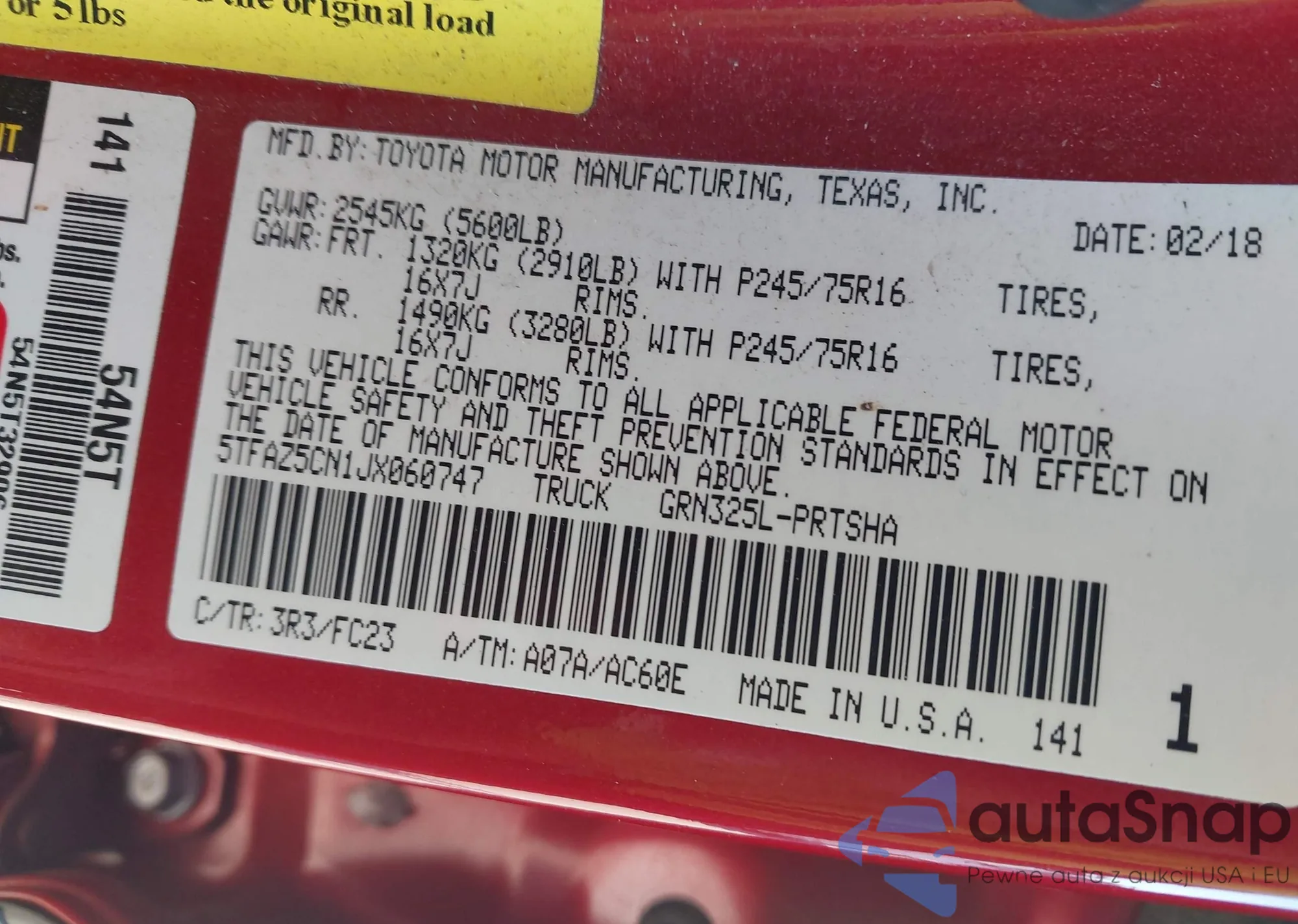 • VIN 5TFAZ5CN1JX060747