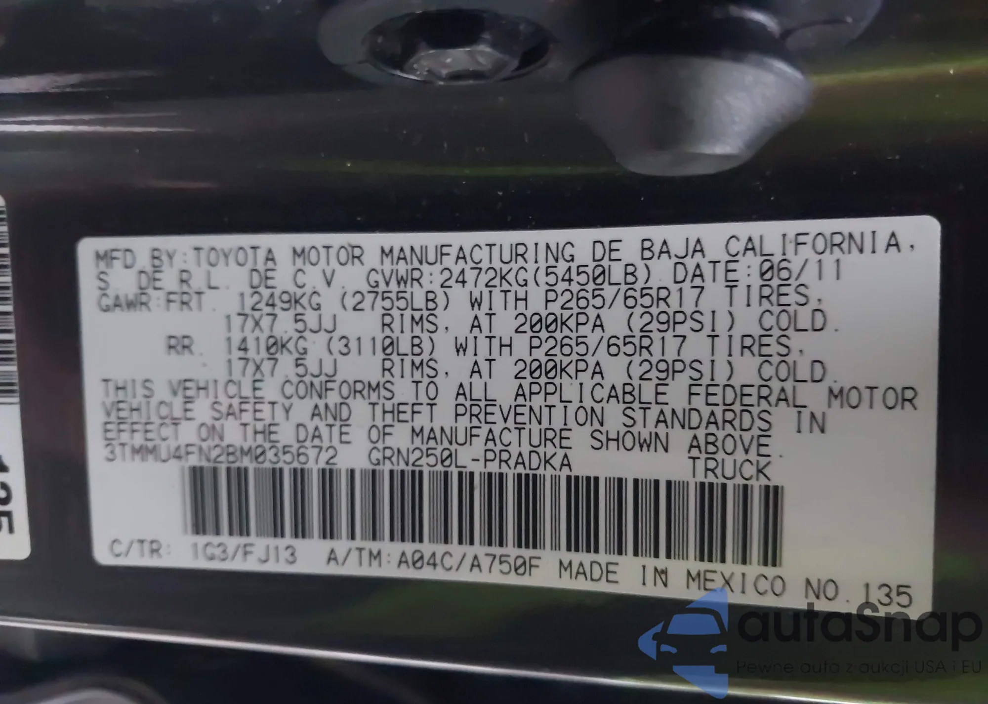 • VIN 3TMMU4FN2BM035672