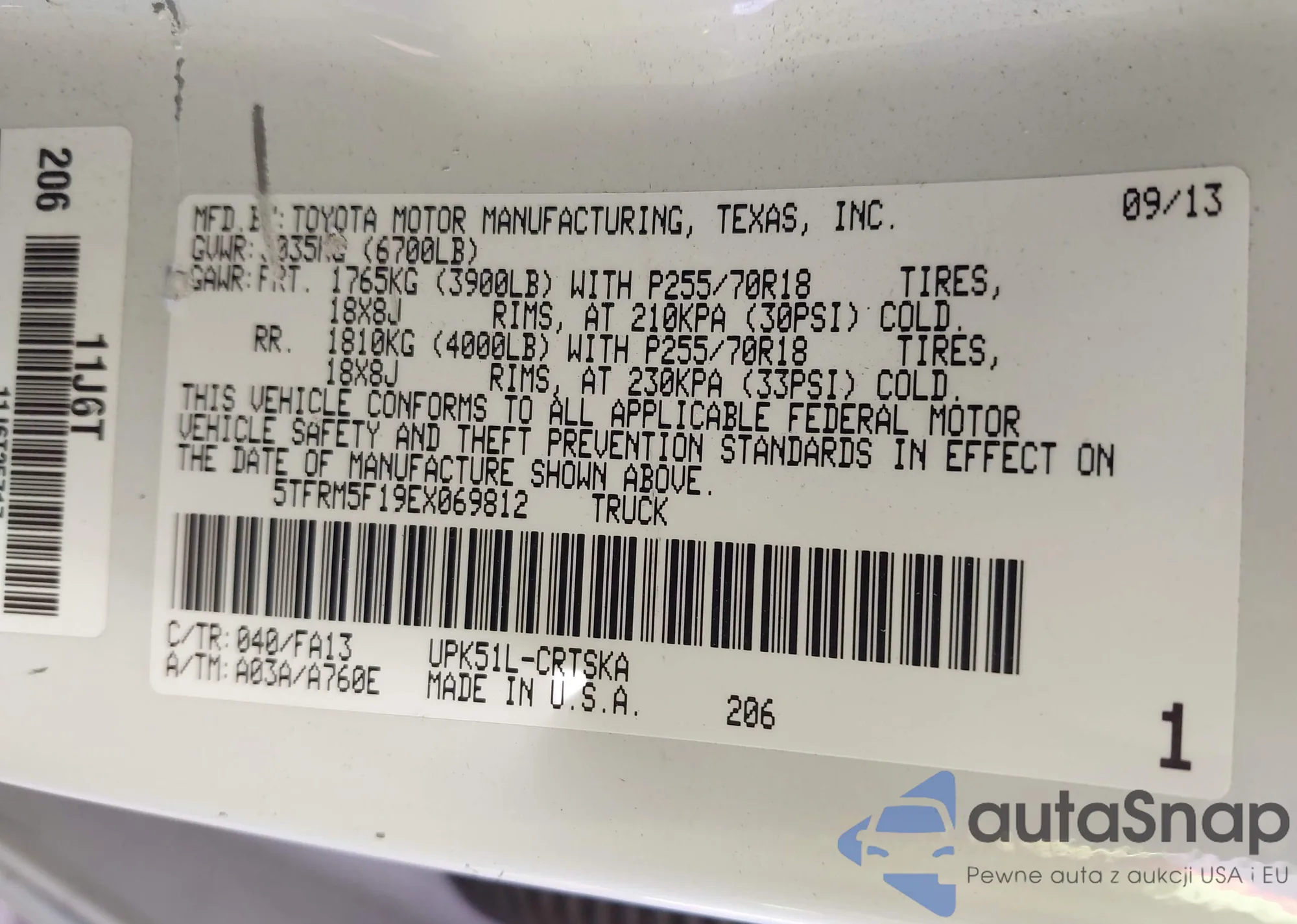 • VIN 5TFRM5F19EX069812