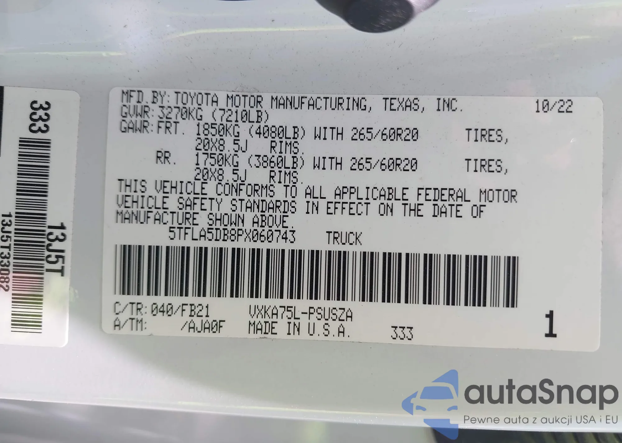• VIN 5TFLA5DB8PX060743