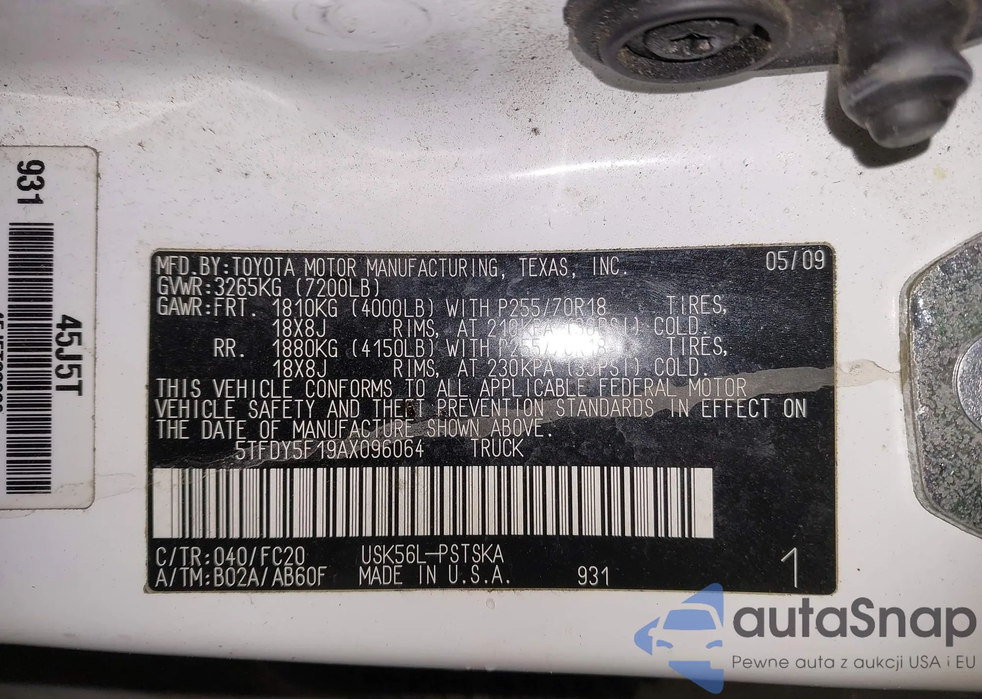 LOT: 44005572 VIN: 5TFUM5F15AX008929