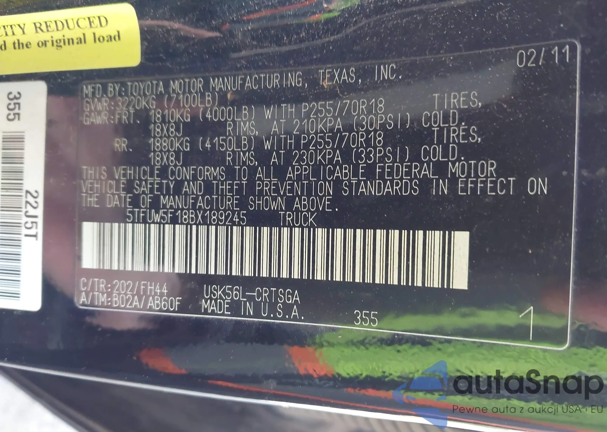 • VIN 5TFLA5DA2PX062947