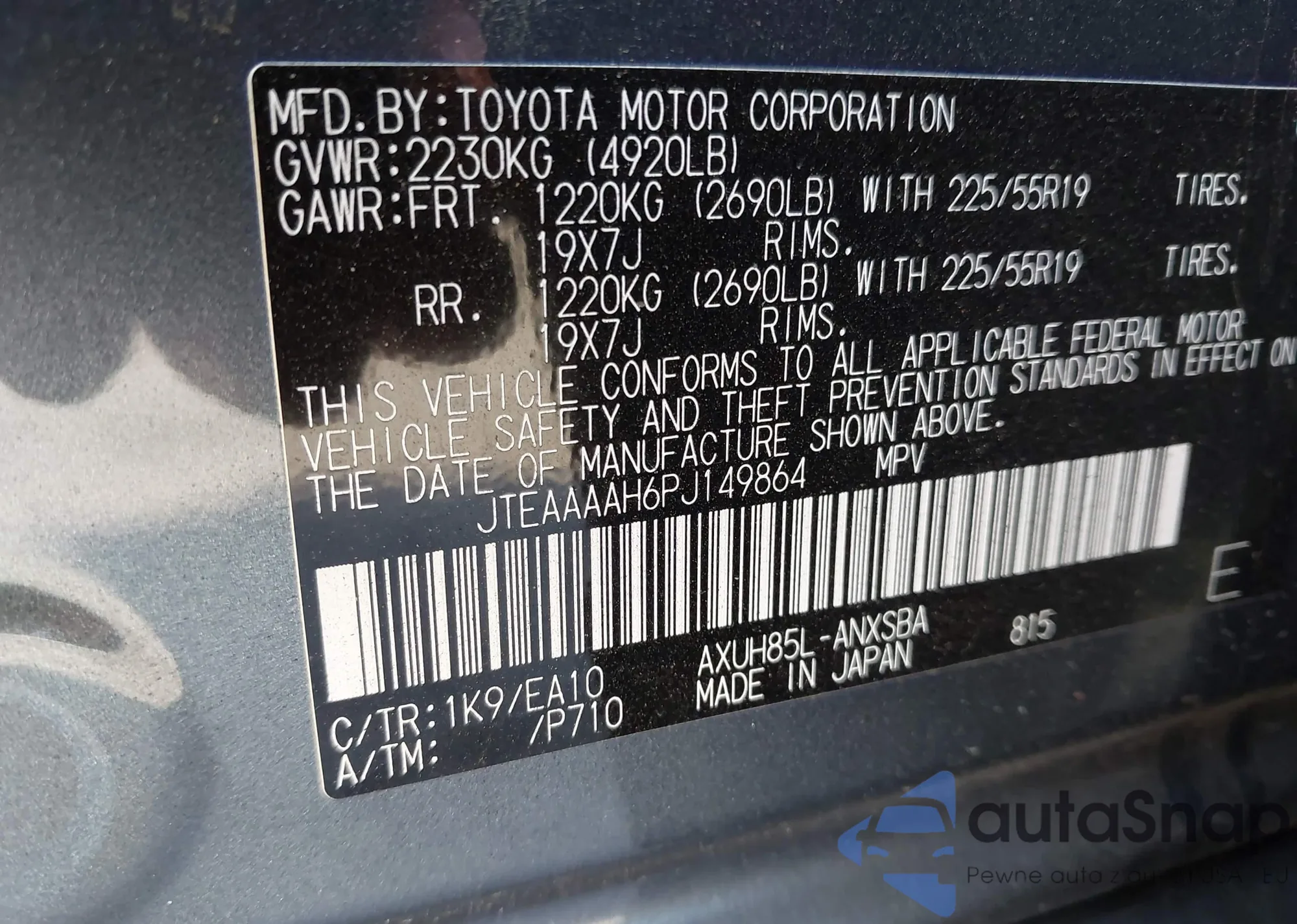 • VIN JTEAAAAH6PJ149864