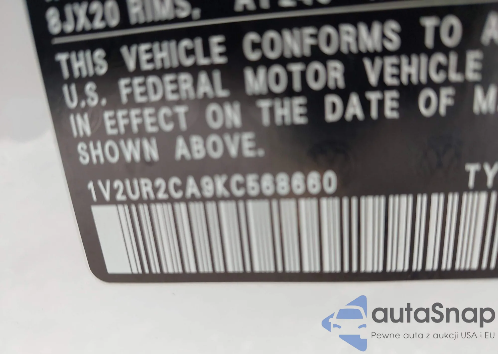 LOT: 43749358 VIN: 1V2UR2CA9KC568660