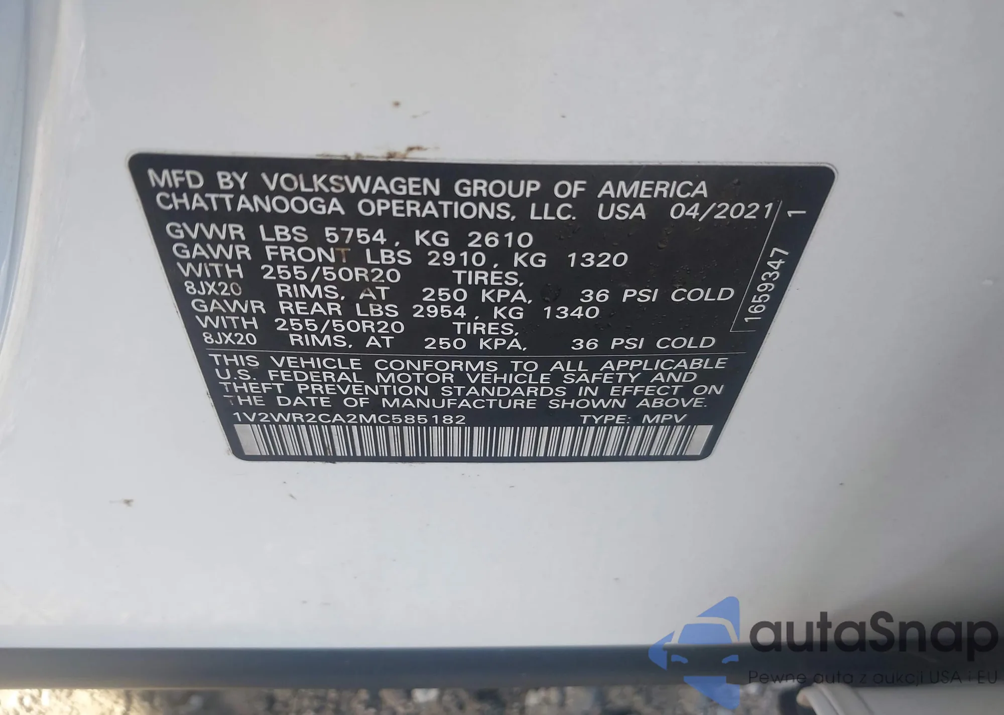 LOT: 43949608 VIN: 1V2PR2CA2MC532213