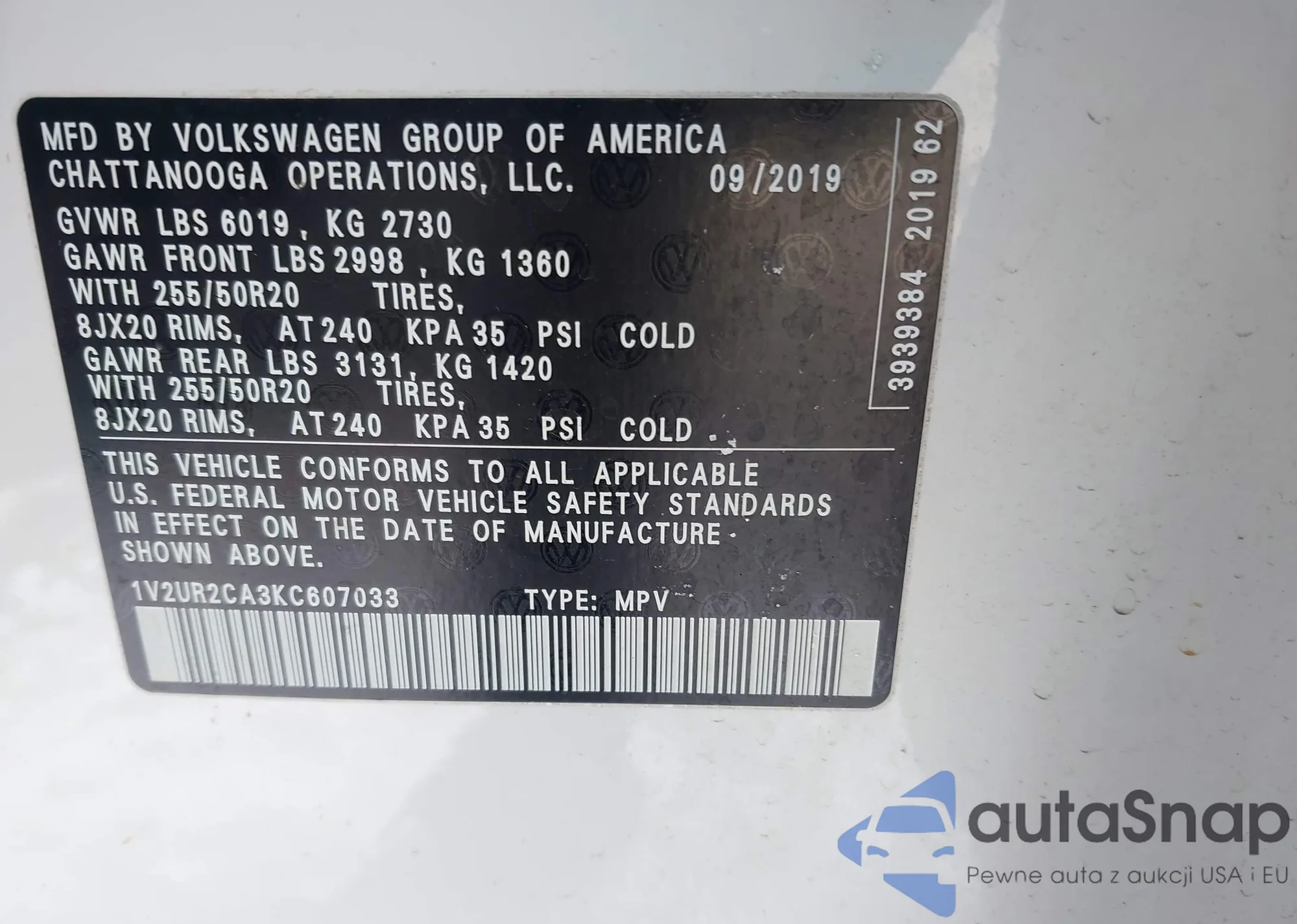 • VIN 1V2UR2CA3KC607033