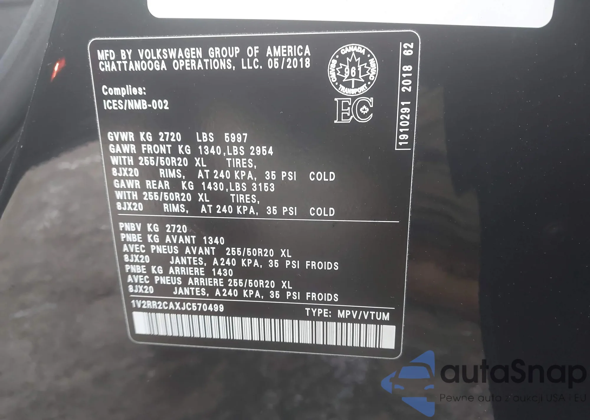 • VIN 1V2RR2CAXJC570499