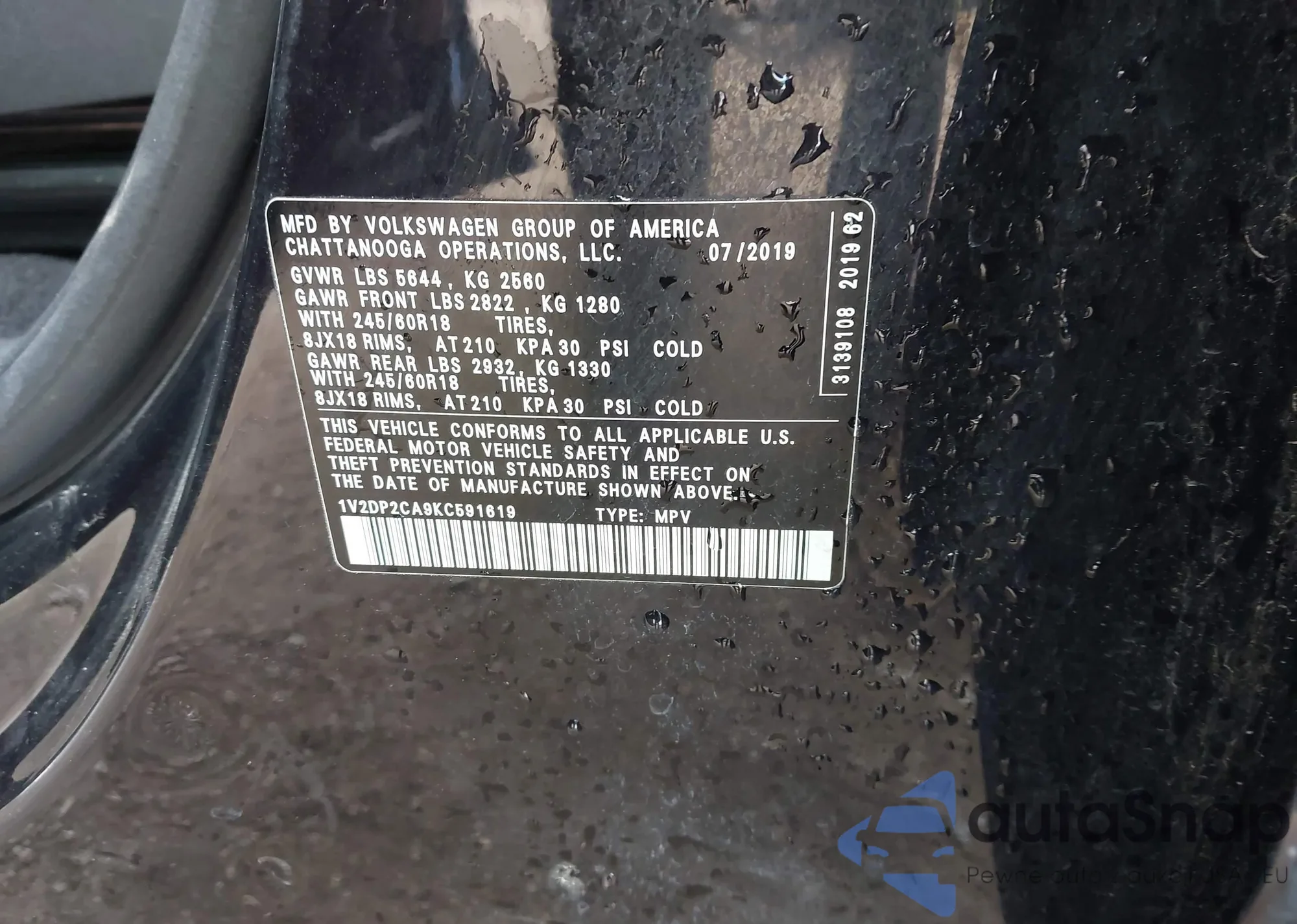 LOT: 44305568 VIN: 1V2DP2CA9KC591619