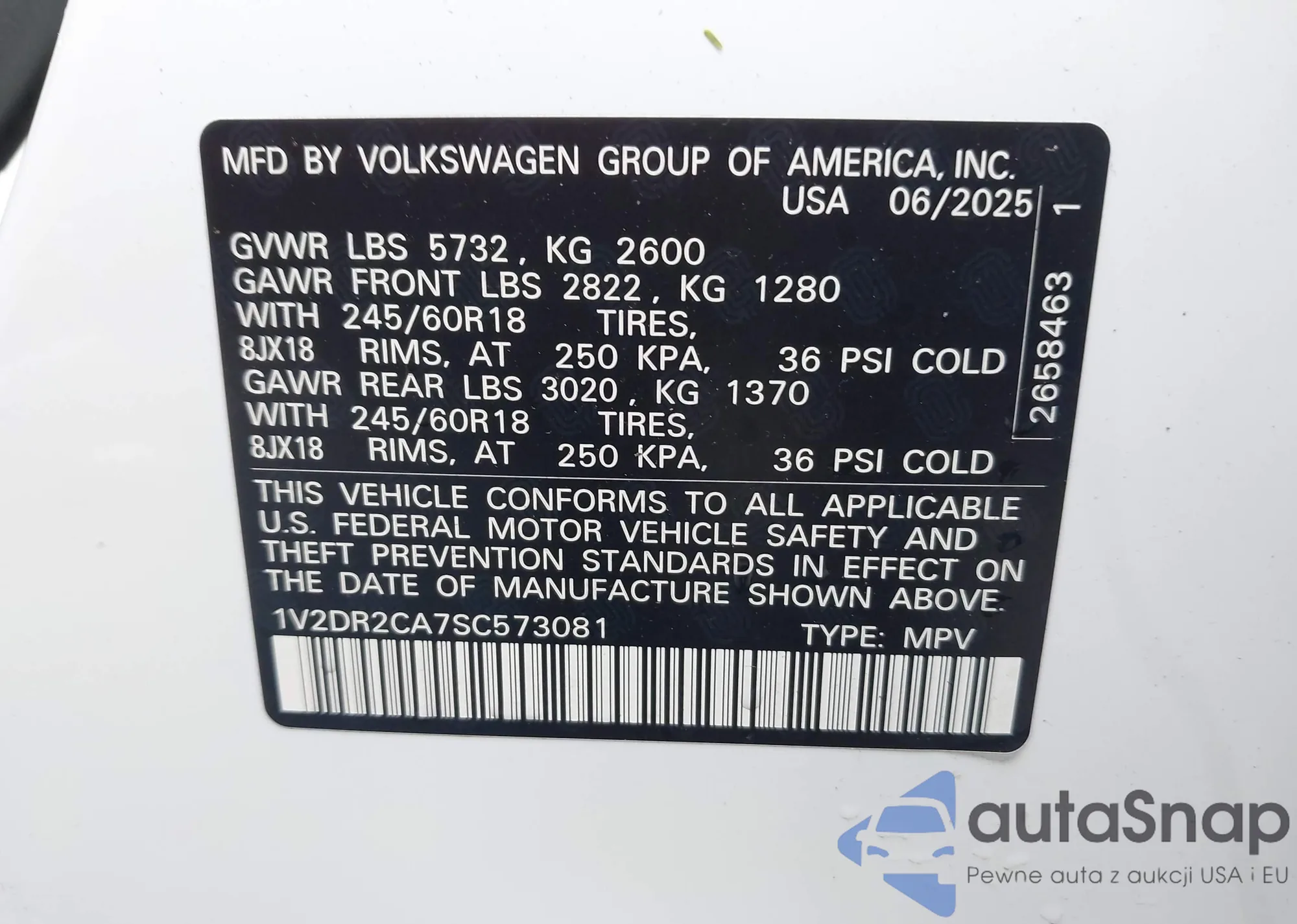 • VIN 1V2DR2CA7SC573081