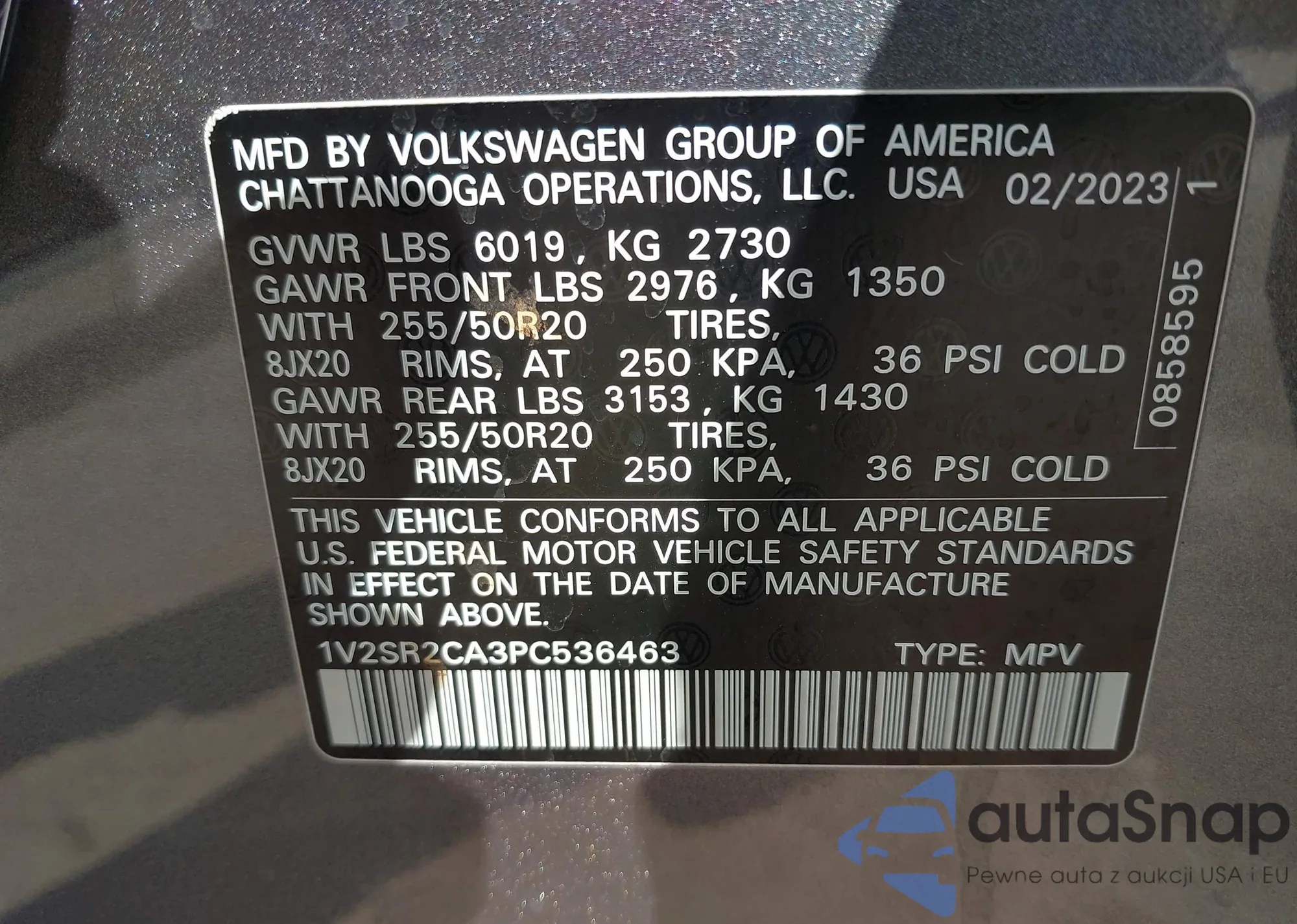 • VIN 1V2SR2CA3PC536463