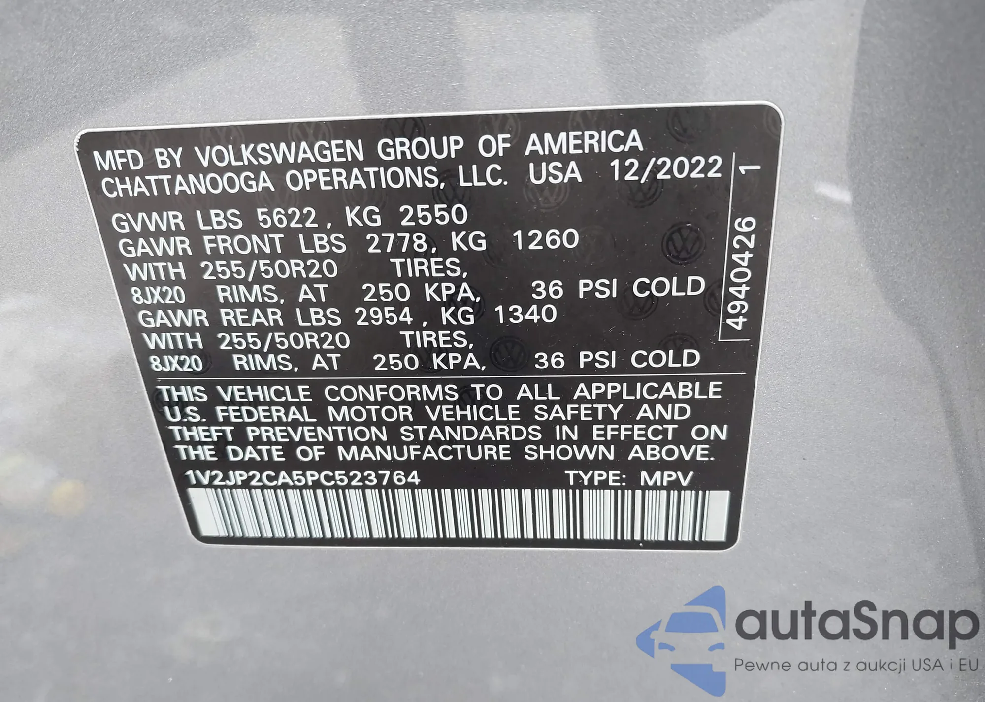 LOT: 39588423 VIN: 1V2JP2CA5PC523764