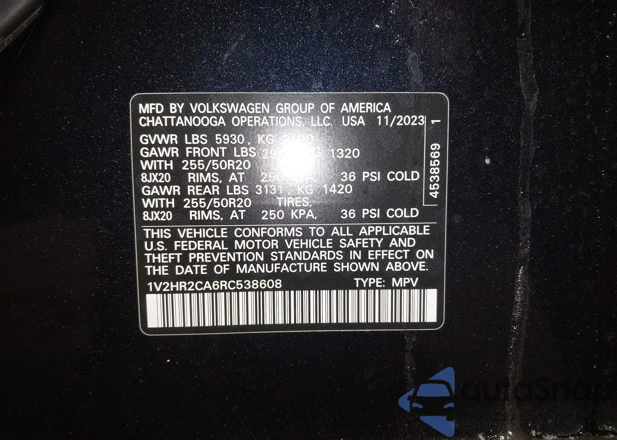 • VIN 1V2HR2CA6RC538608
