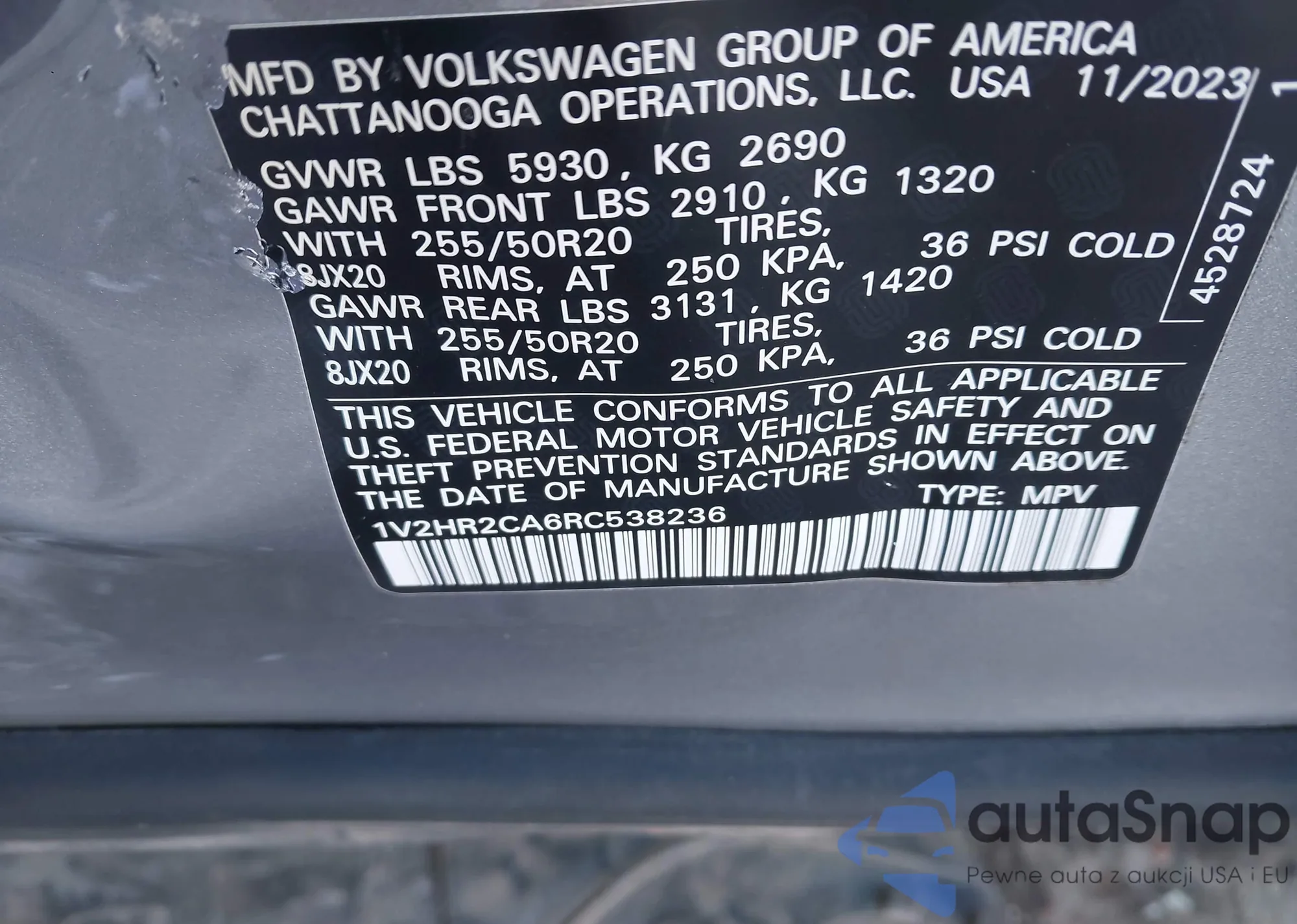 • VIN 1V2HR2CA6RC538236