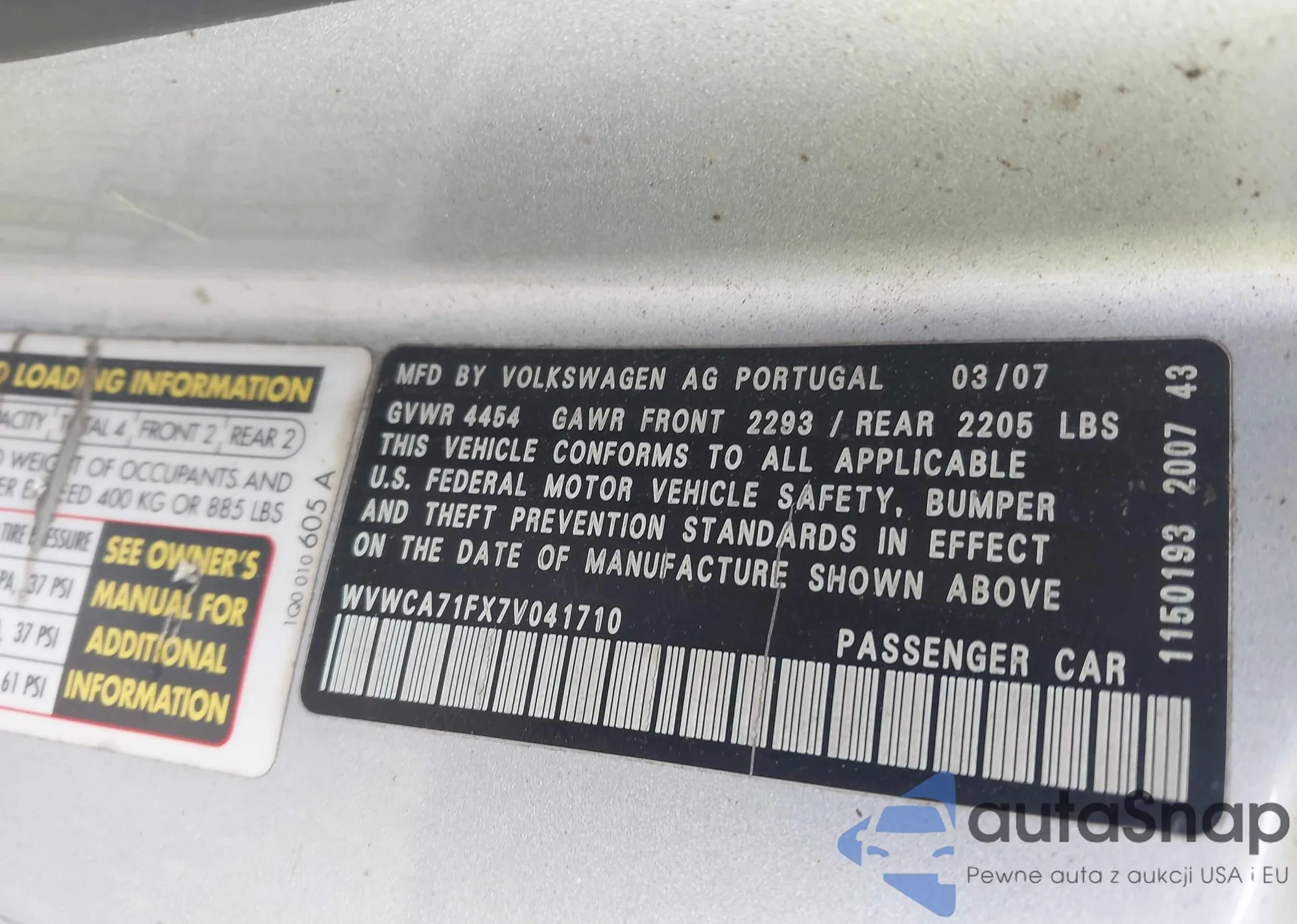 LOT: 43705142 VIN: WVWCA71FX7V041710