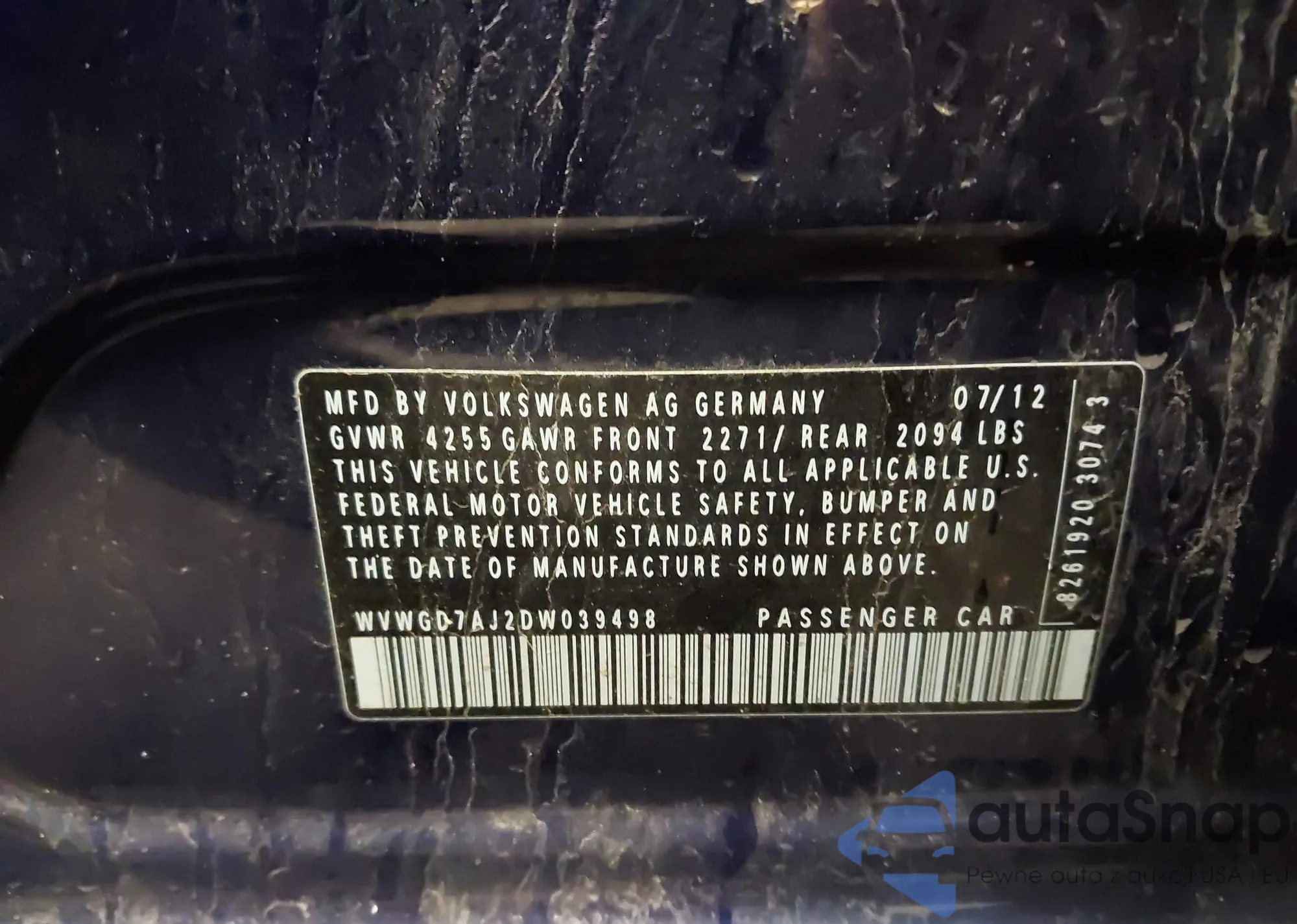 • VIN WVWGD7AJ2DW039498