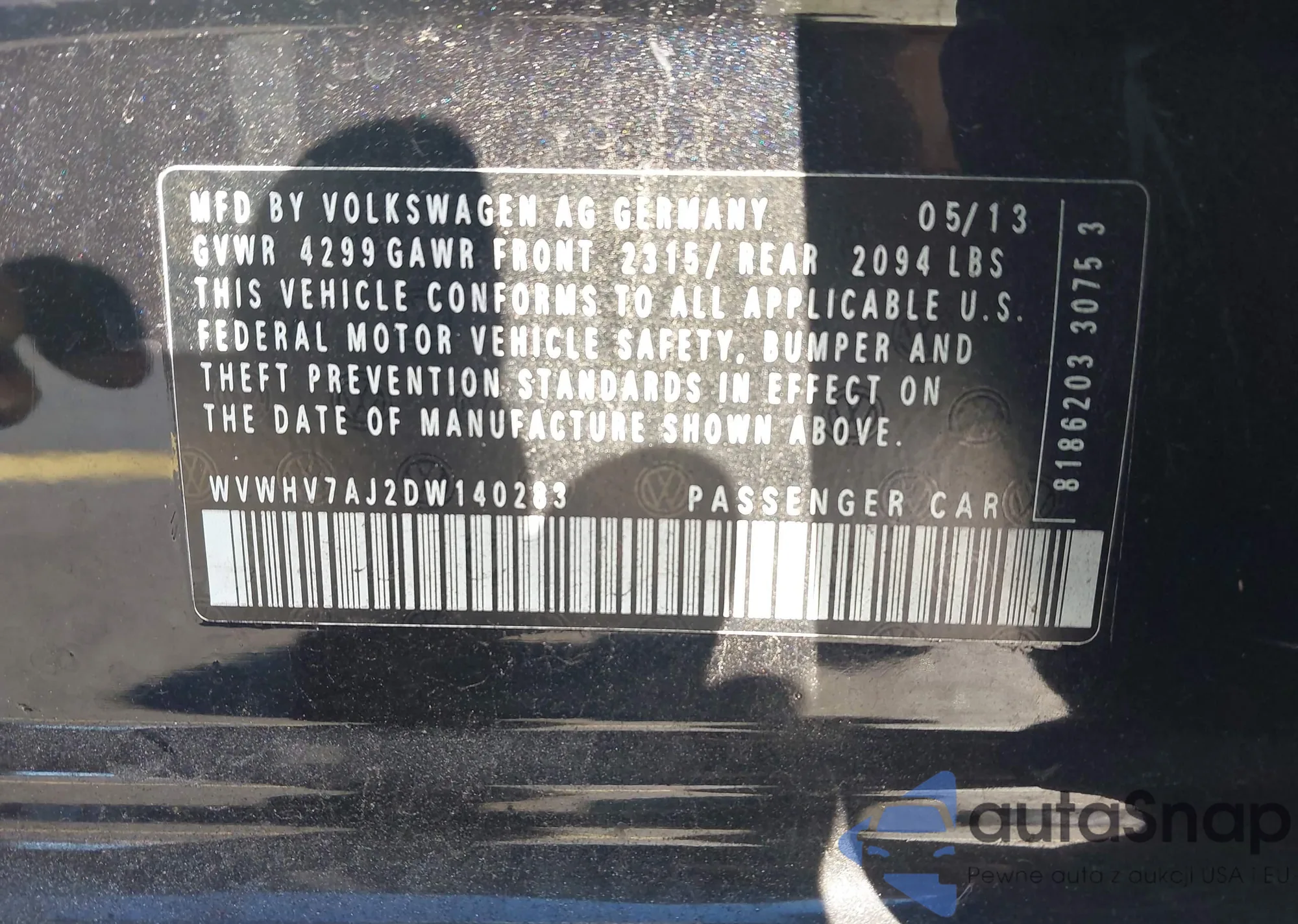• VIN WVWHV7AJ2DW140283