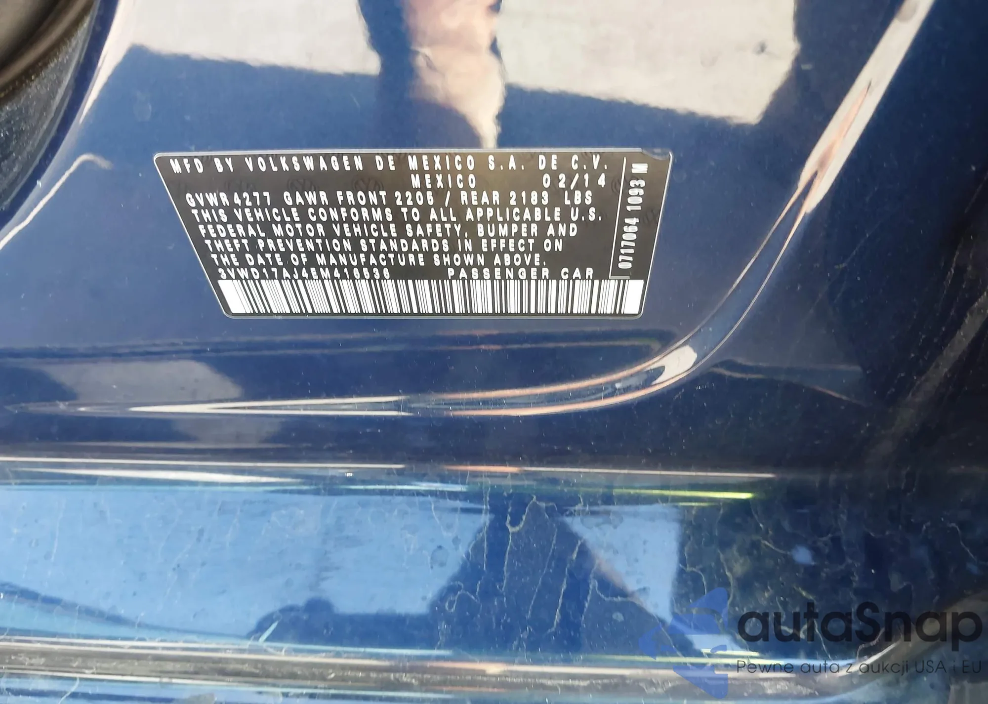 • VIN 3VWD17AJ4EM416536